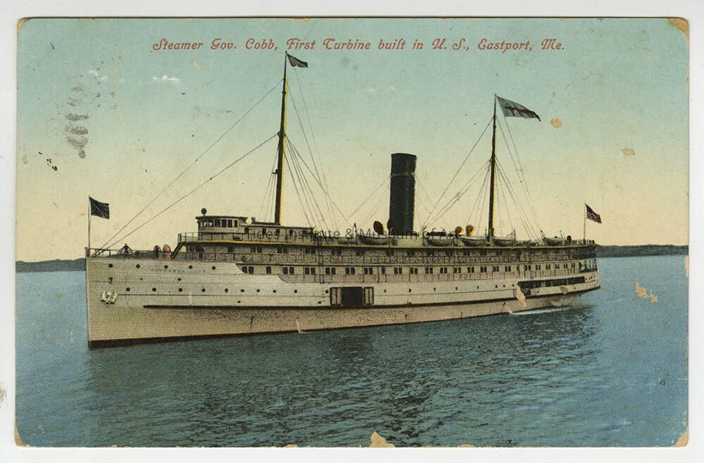 Steamer Governor Cobb, First Turbine Built in U.S., Eastport, Maine | Postcard