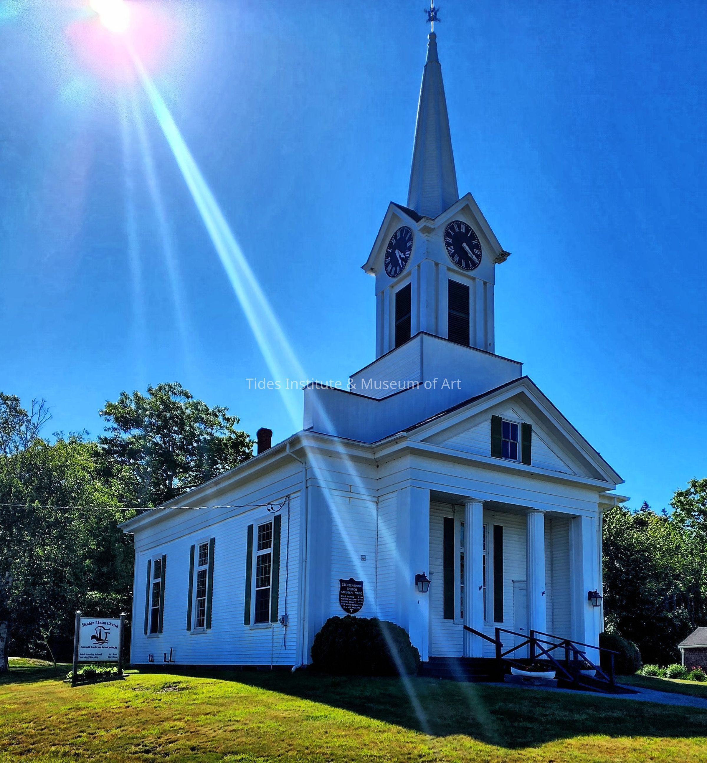 This Greek Revival church was built in 1852-1853 after a fire destroyed the earlier ohurch in 1850. Greek Revival influence is evident in the distinct pediment, four columned front portico, and the wide cornice and pilasters outlining the building. The church bell was hung in June, 1864, and the town clock was installed in 1885. The Steuben Union Church stands on the Village Green near Townsley Square. AFN