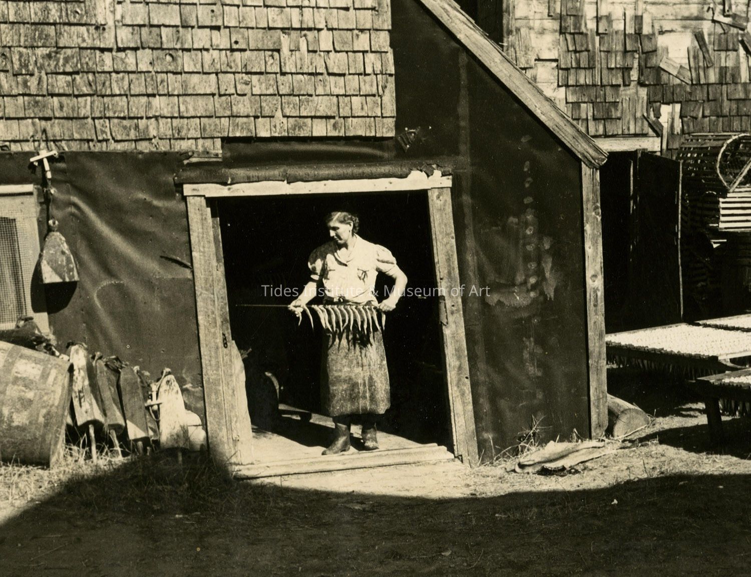 George Daniell (1911-2002) | Stringing the Herring Onto Sticks for Drying in the Sun | 1938Description