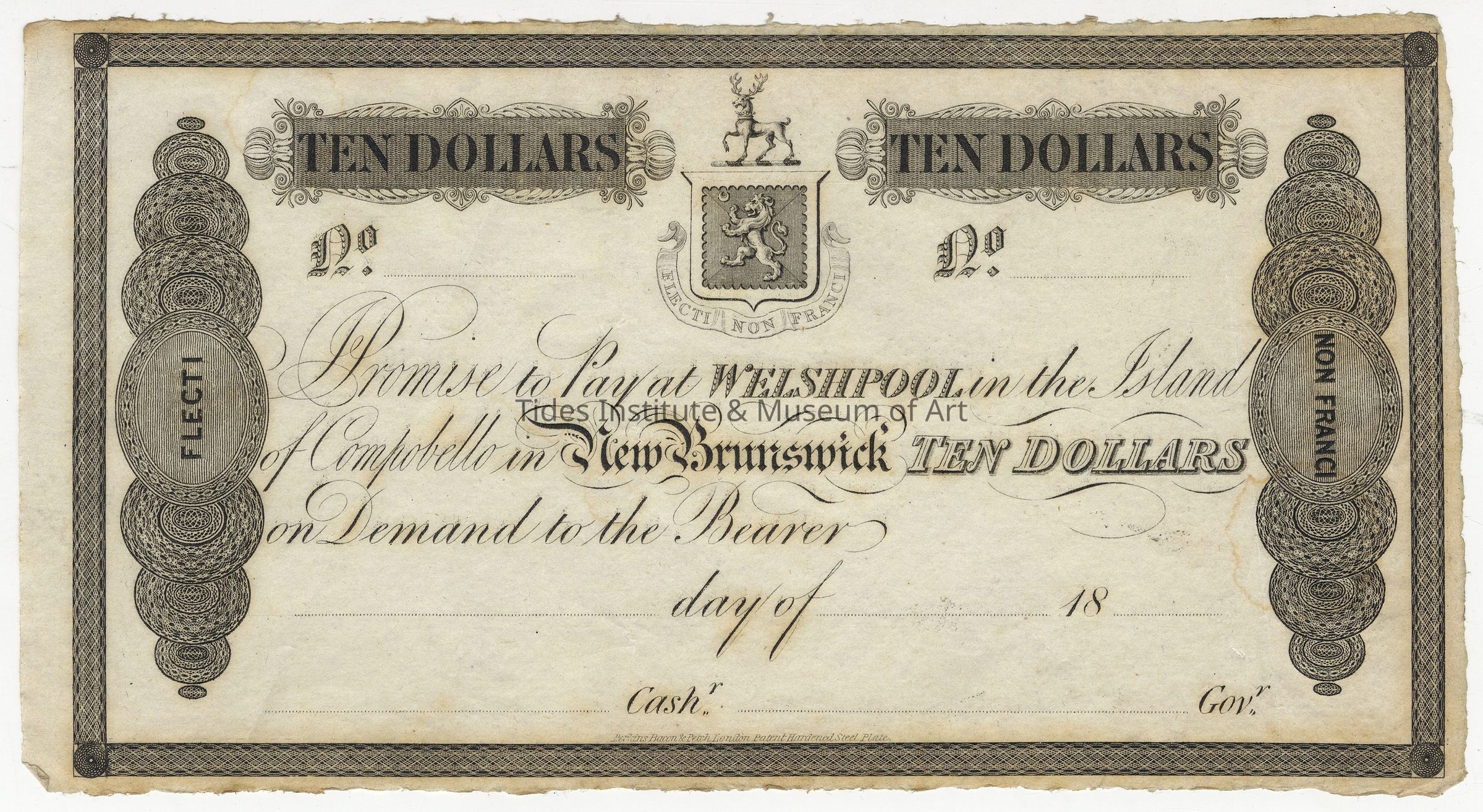 Ten Dollar Note | Campobello Mill and Manufacturing Company | Campobello, New Brunswick | 1839