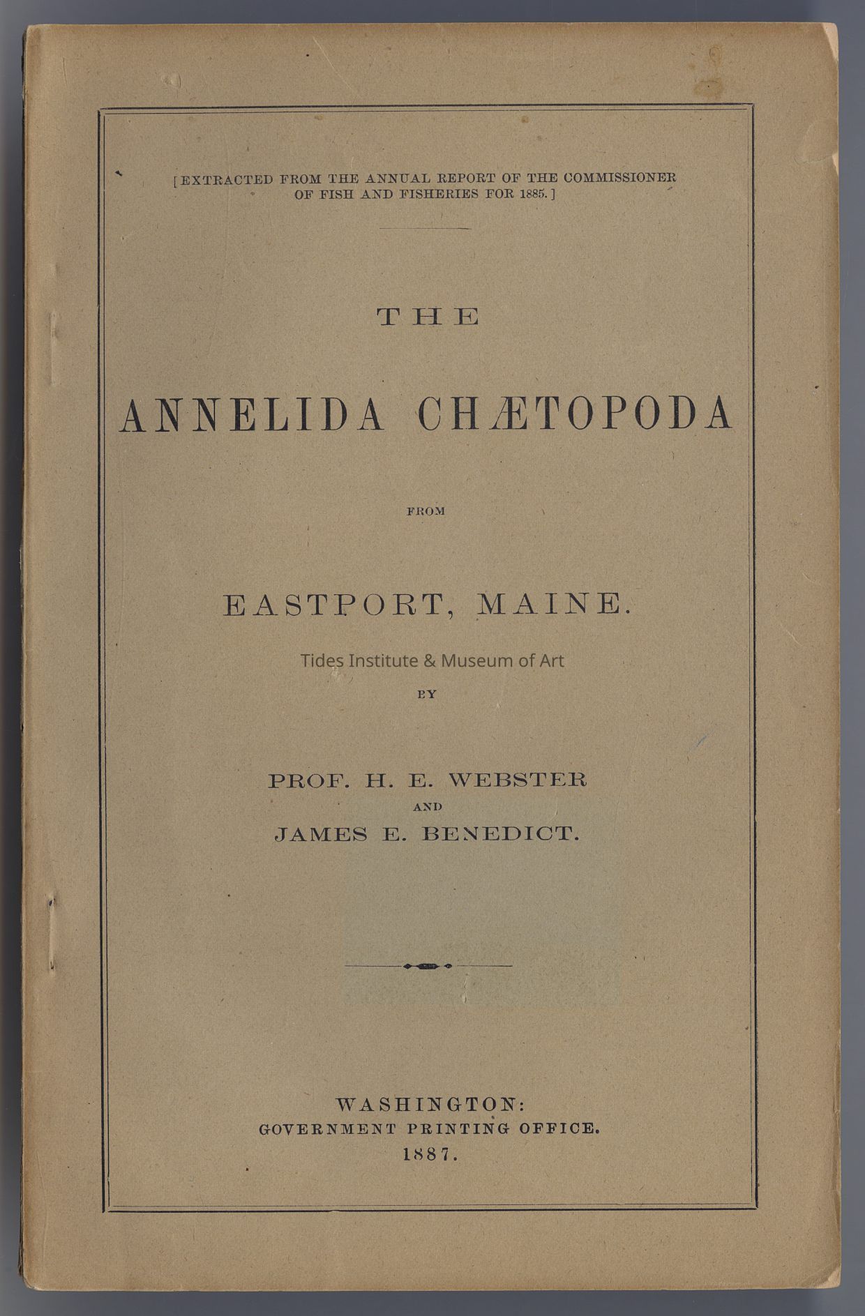The Annelida Chaetopodo from Eastport, Maine | Prof. H.E. Webster and James E. Benedict | Washington: Government Printing Office, 1887