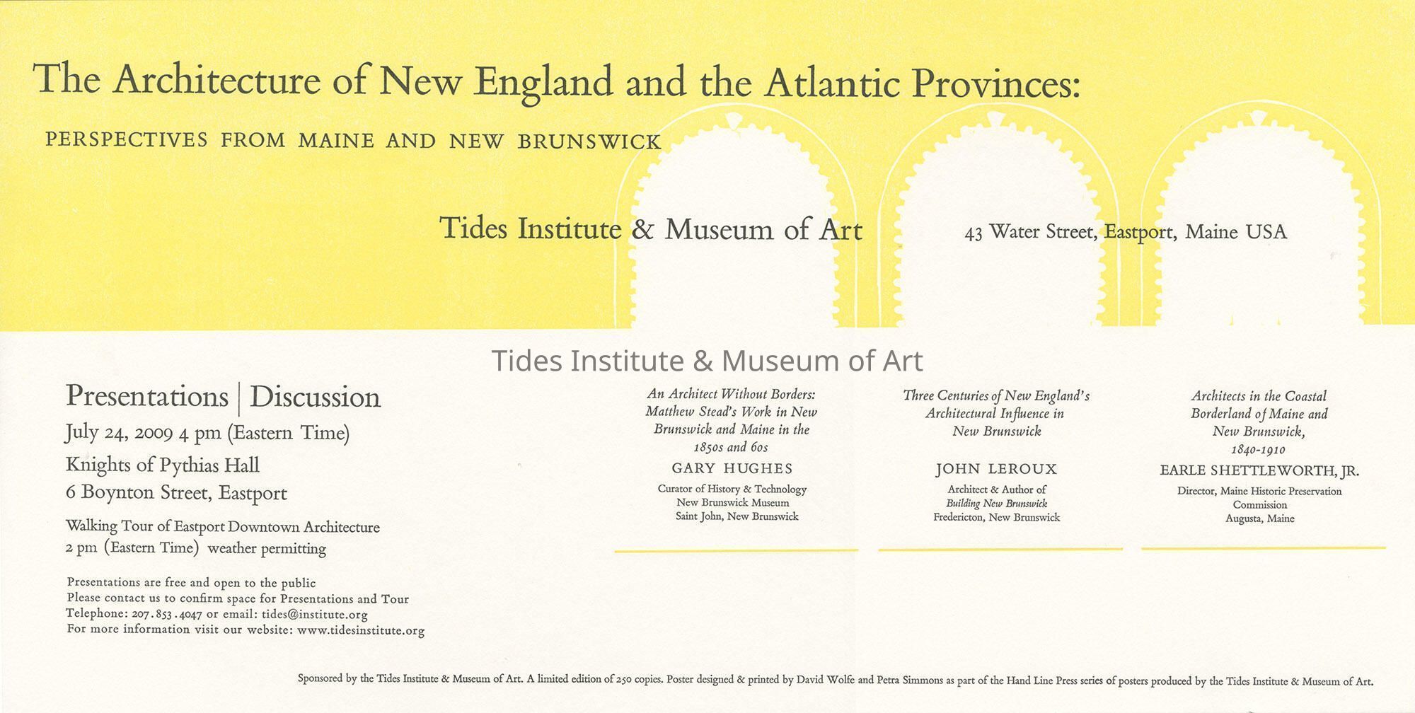Sponsored by the Tides Institute & Museum of Art. A limited edition of 250 copies. Poster designed & printed by David Wolfe and Petra Simmons as part of the Hand Line Press series of posters produced by the Tides Institute & Museum of Art.