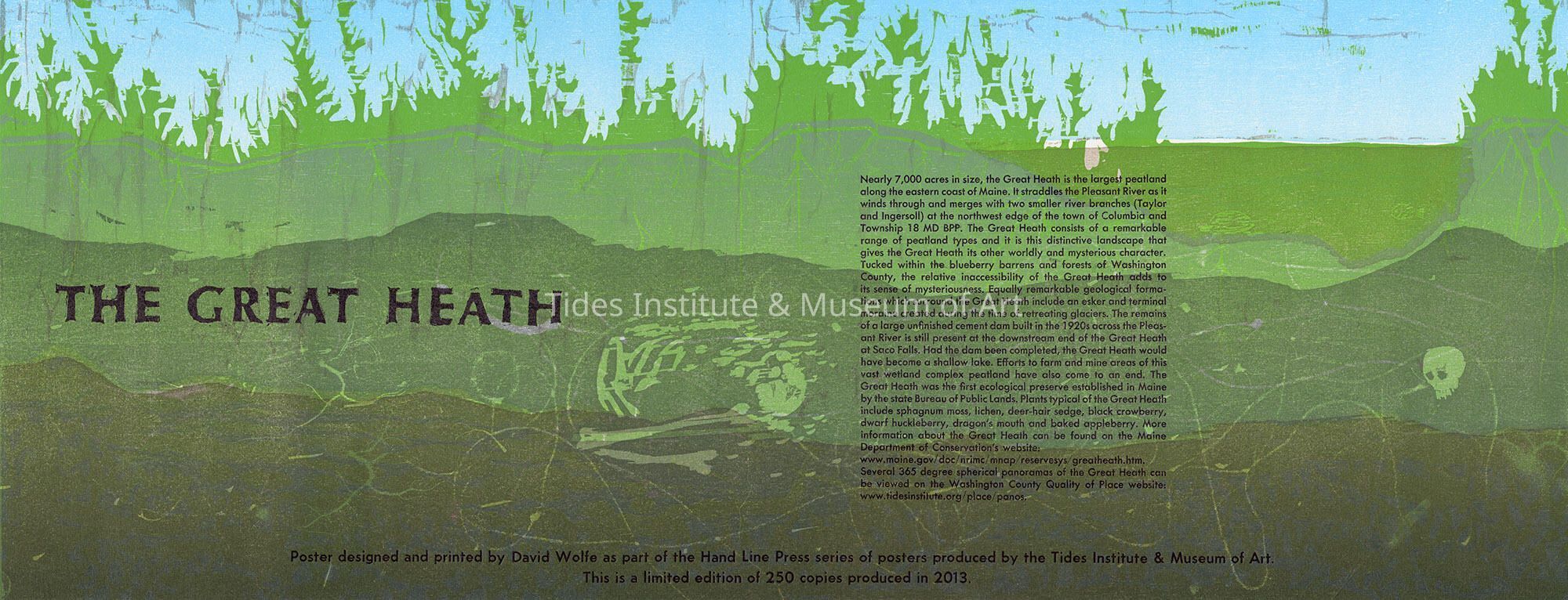 Poster designed and printed by David Wolfe as part of the Hand Line Press series of posters produced by the Tides Institute & Museum of Art. This is a limited edition of 250 copies produced in 2013.