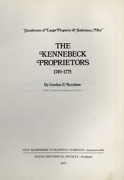 The Kennebec Proprietors, 1749-1775: "Gentlemen of Large Property and Judicious Men" | Gordon E. Kershaw
