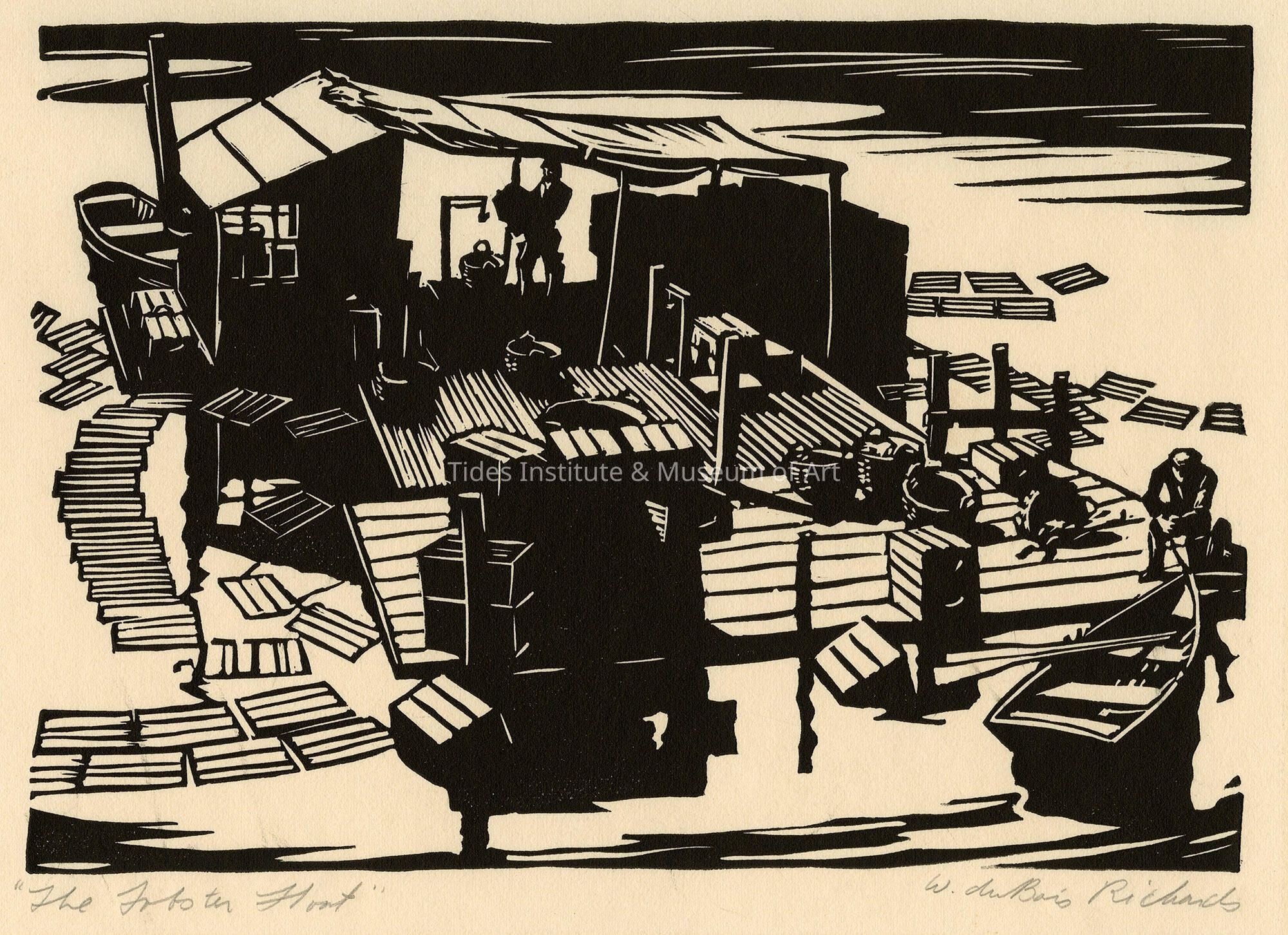 This print is a relief cut done on linoleum and with a companion print won honorable mention at the "May Show" at the Cleveland Museum of Art in 1933. It is printed on French Rivers paper and two hundred and fifty copies were made available to members of the Print A Month Club."