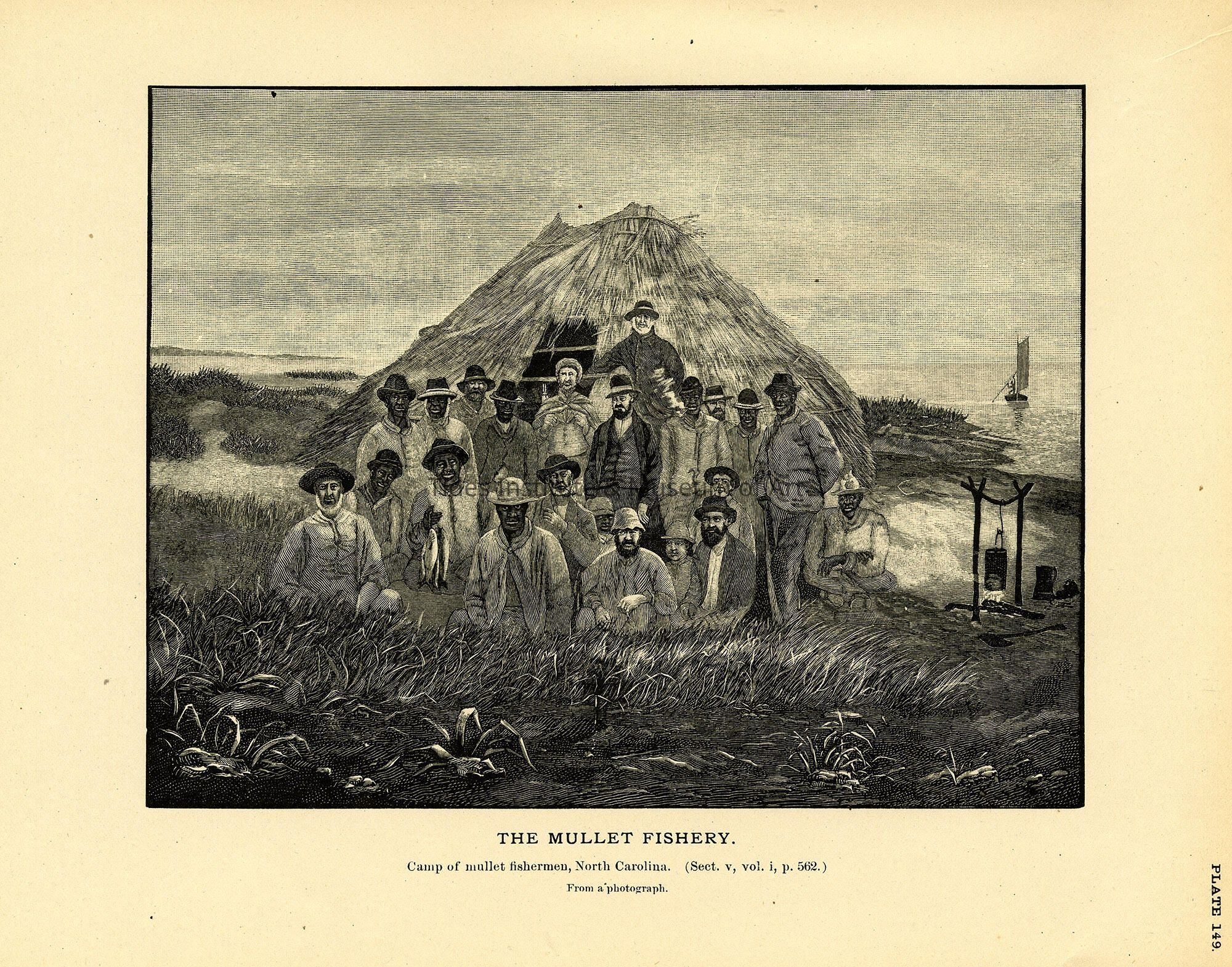 Artist: From a photograph Classification: Prints Circa: 1887 Old Accession Number: 1025 Description: Camp of mullet fishermen, North Carolina. (Sect. v, vol. i, p. 562)