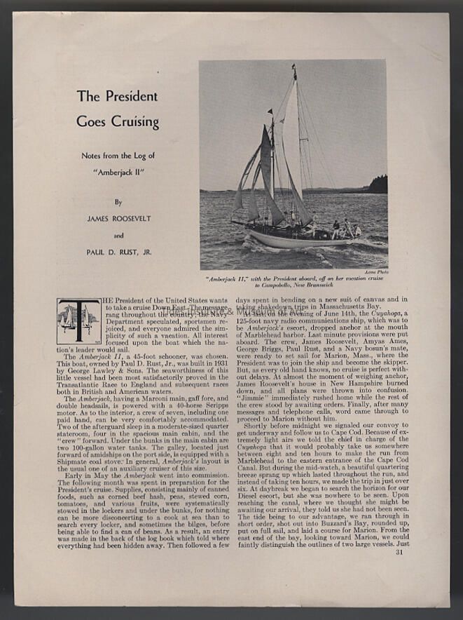 The President Goes Cruising: Notes from the Log of “Amberjack II” | James Roosevelt and Paul D. Rust, Jr. | Yachting, August, 1933, pp. 31 - 33, 90 - 92.