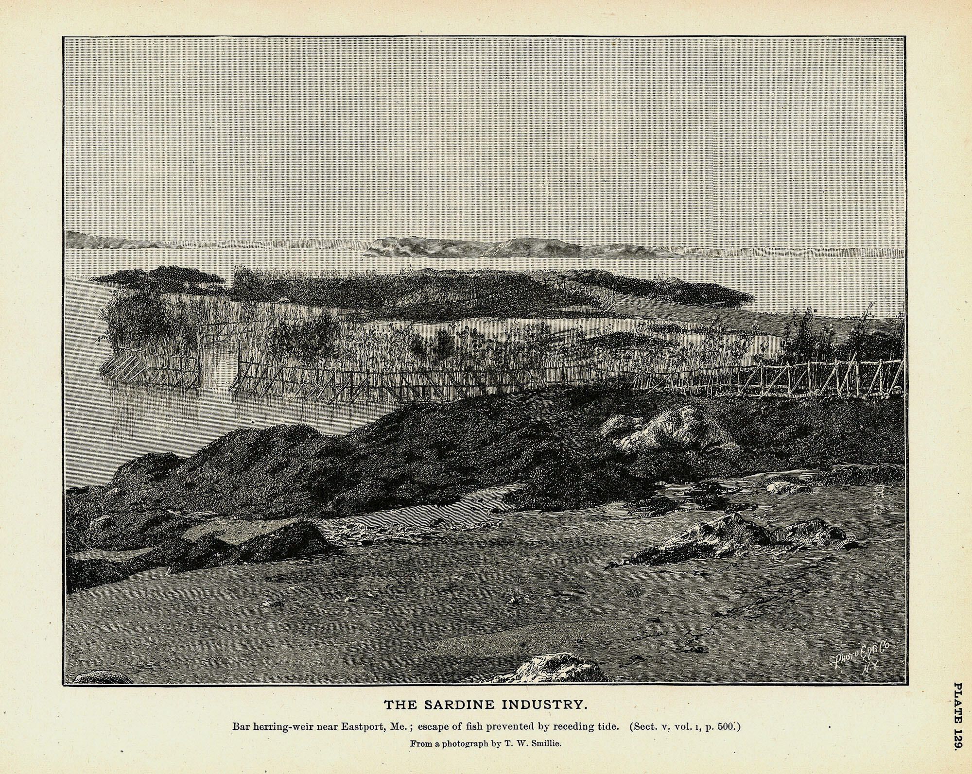Bar erring weir near Eastport, Me.; escape of fish prevented by receding tide. (Sect. v, vol. 1 p. 500)