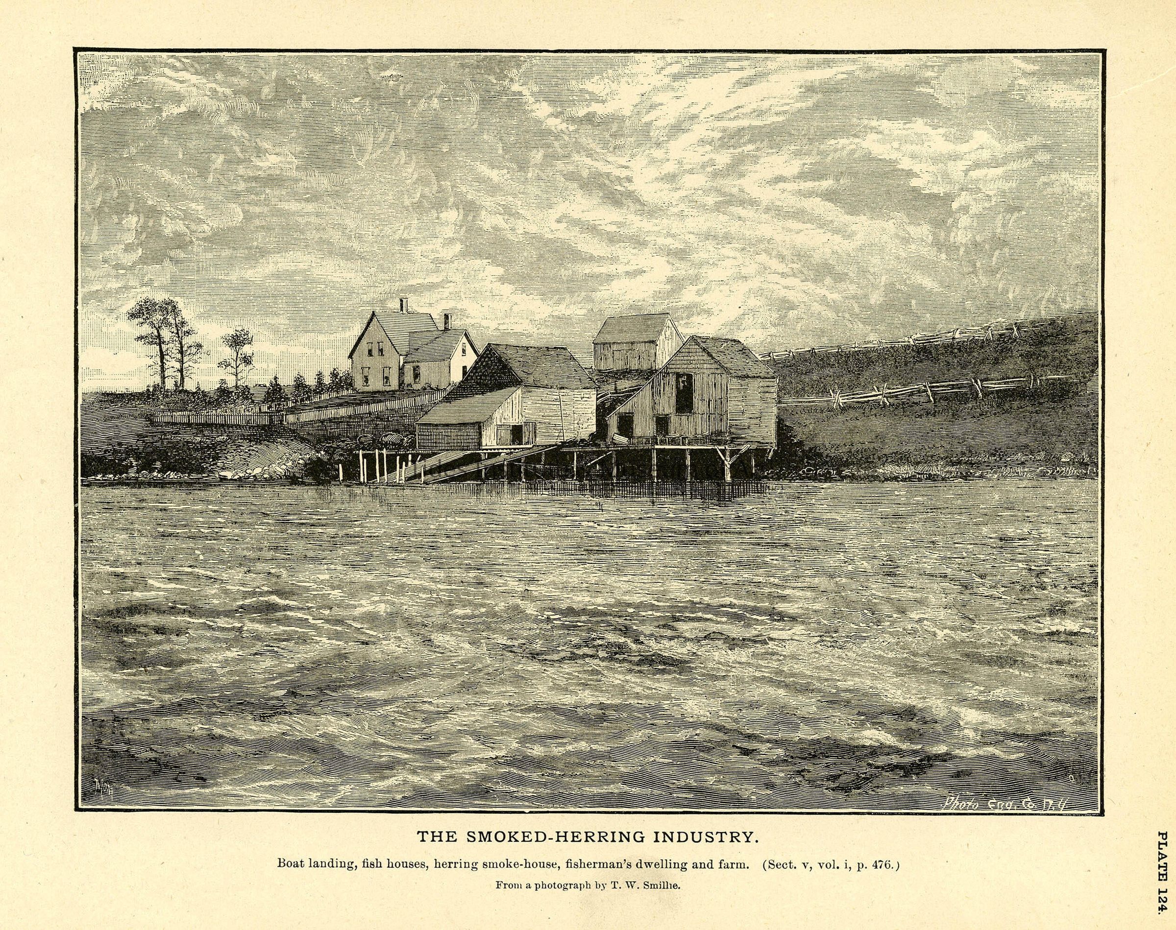 Boat landing, fish houses, herring smoke-houses, fisherman's dwelling and farm. (Sect. v, vol. i, p. 476)