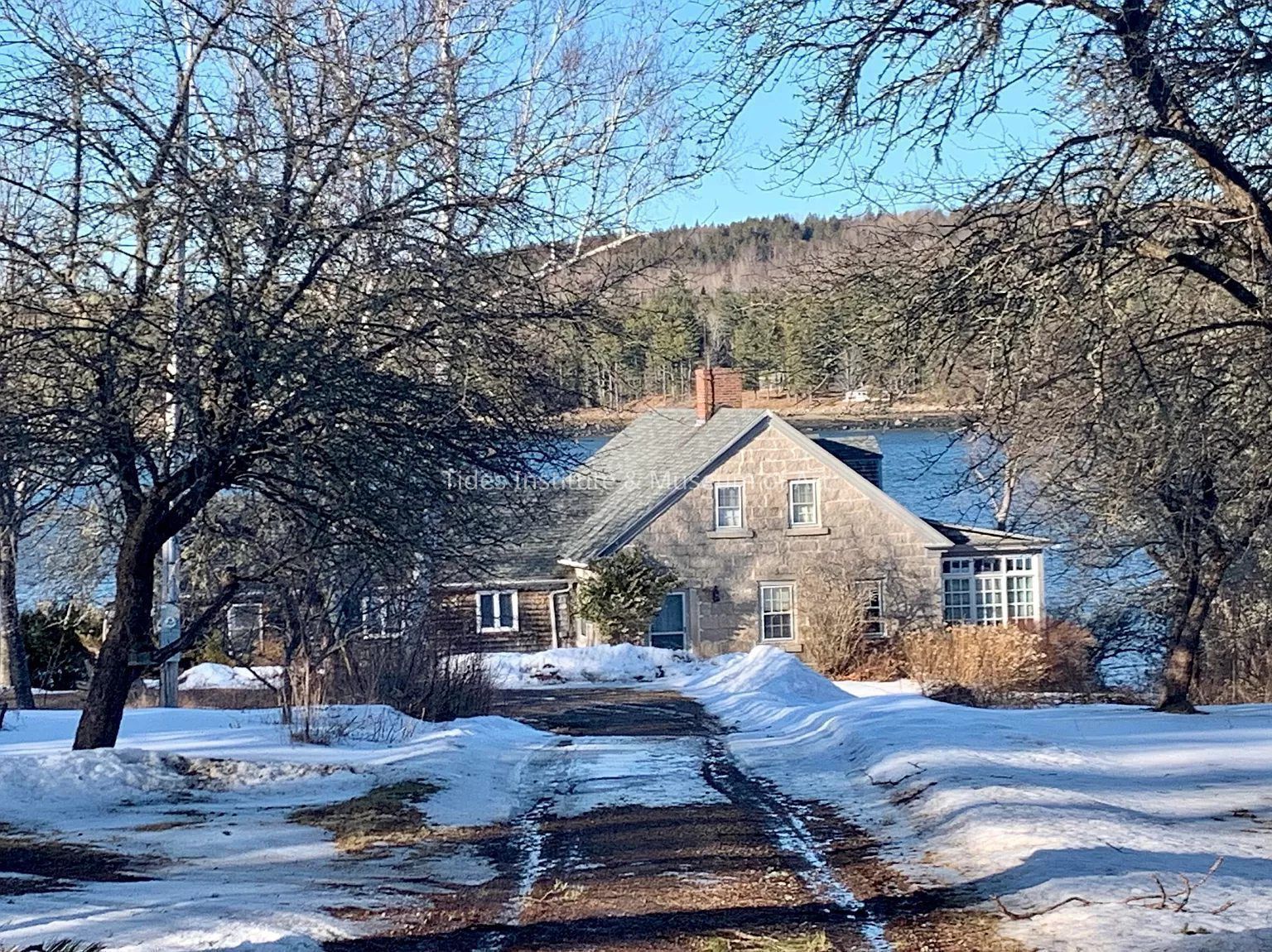 Theodore Jellison, who, in 1825, built this rare and large stone house on the bank ofthe St. Croix River, owned granite quarries in Calais so he demonstrated that a granite building could be built. Ships could be loaded with granite at his nearby . stone wharf. The one-and-one half story south side has three bays. The gable has an entrance with Greek Revival six-oversix double sash windows and Gornices. In 1925 two dormers penetrated the roof and a veranda on the east side was added. A one story wooden frame shingled ell is on the west side. A granite fireplace is in the basement. A Dutch oven on the first floor, heats the house. A reproduction of the original 1862 wall paper covers the main hall interior. F AB, JCB
