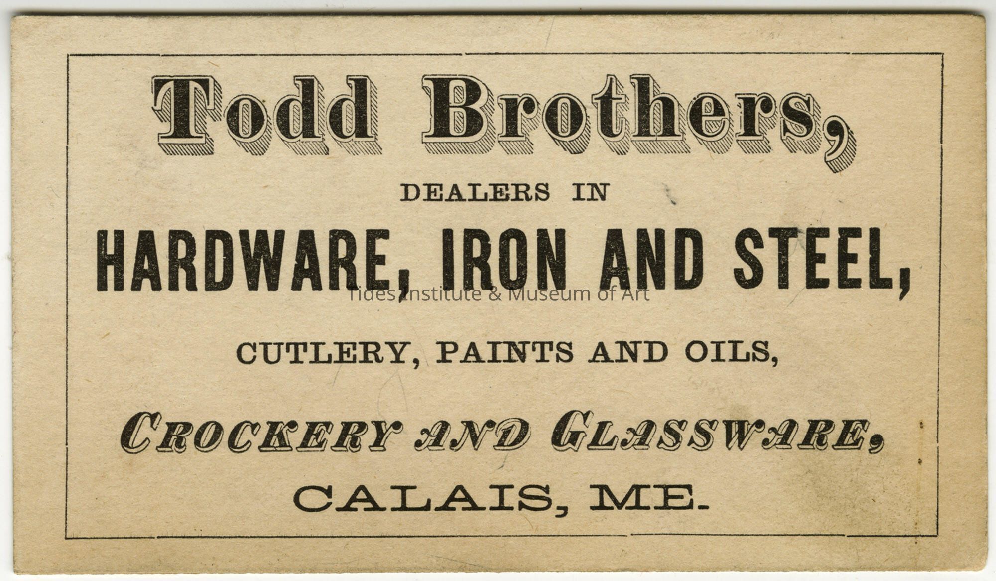 Todd Brothers | Calais, Maine | Trade Card
