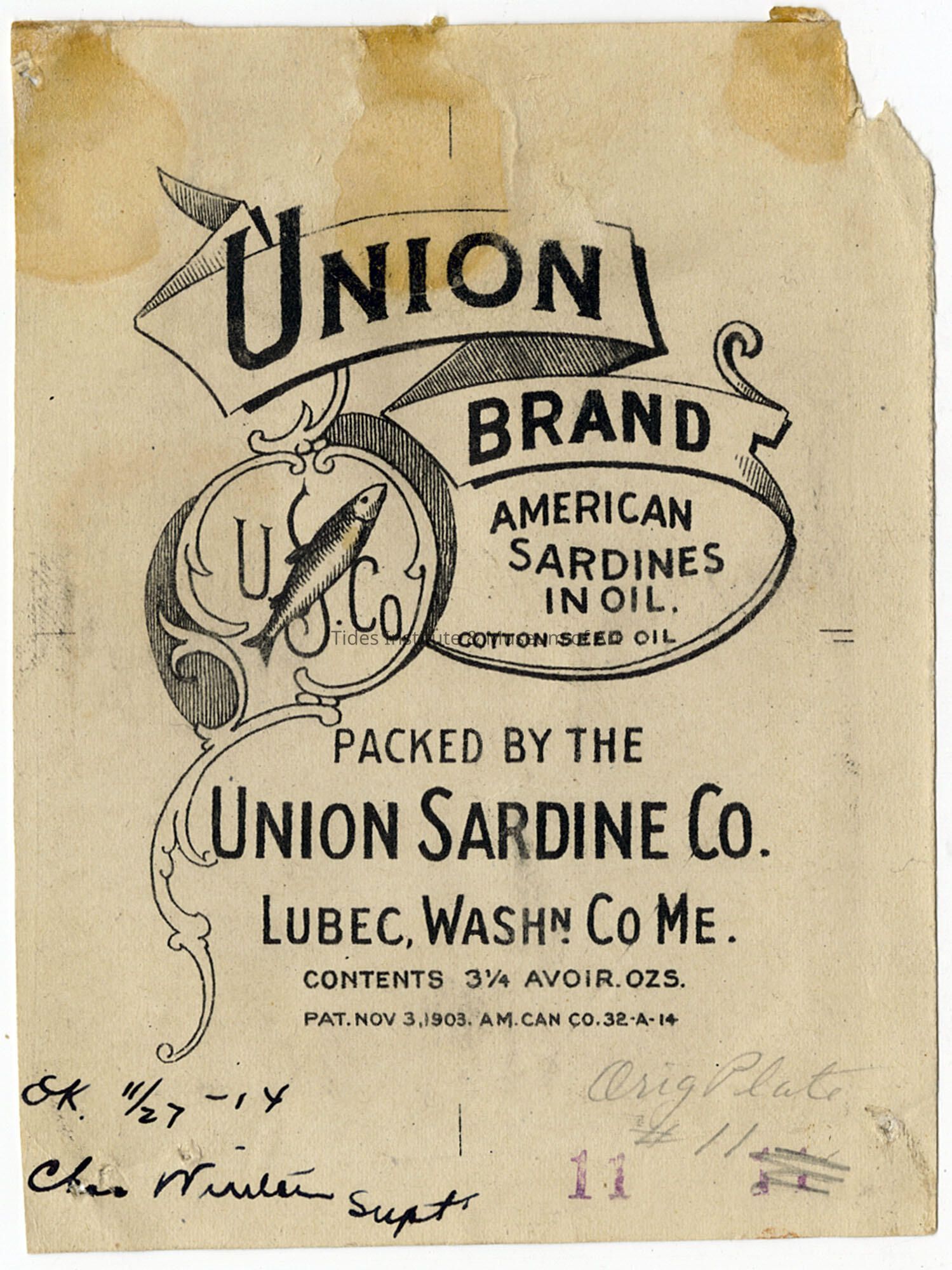 Old Accession Number: 877 Circa: 1903 Description: Packed By The Union Sardine Co. Lubec, Washington County, ME.