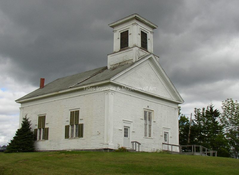 One final point regarding this property that is worthy of mention its dramatic site. While many rural church buildings in Maine occupy sites with picturesque settings that have had little or no late nineteenth or twentieth century encroachment, very few share — or more particularly take advantage of " the type of vista that accompanies the Union Evangelical Church. From its location about one- hundred feet above sea level, the church’s entries open onto a lawn to the southeast of which the grade changes rapidly to meet the Pleasant River and its broad tidal marsh. Although this site has proven at times to be a dangerous one (witness the destruction of the 1789 and 1839 buildings by natural forces), it is one that provides a dramatic link between the natural and man made environment.