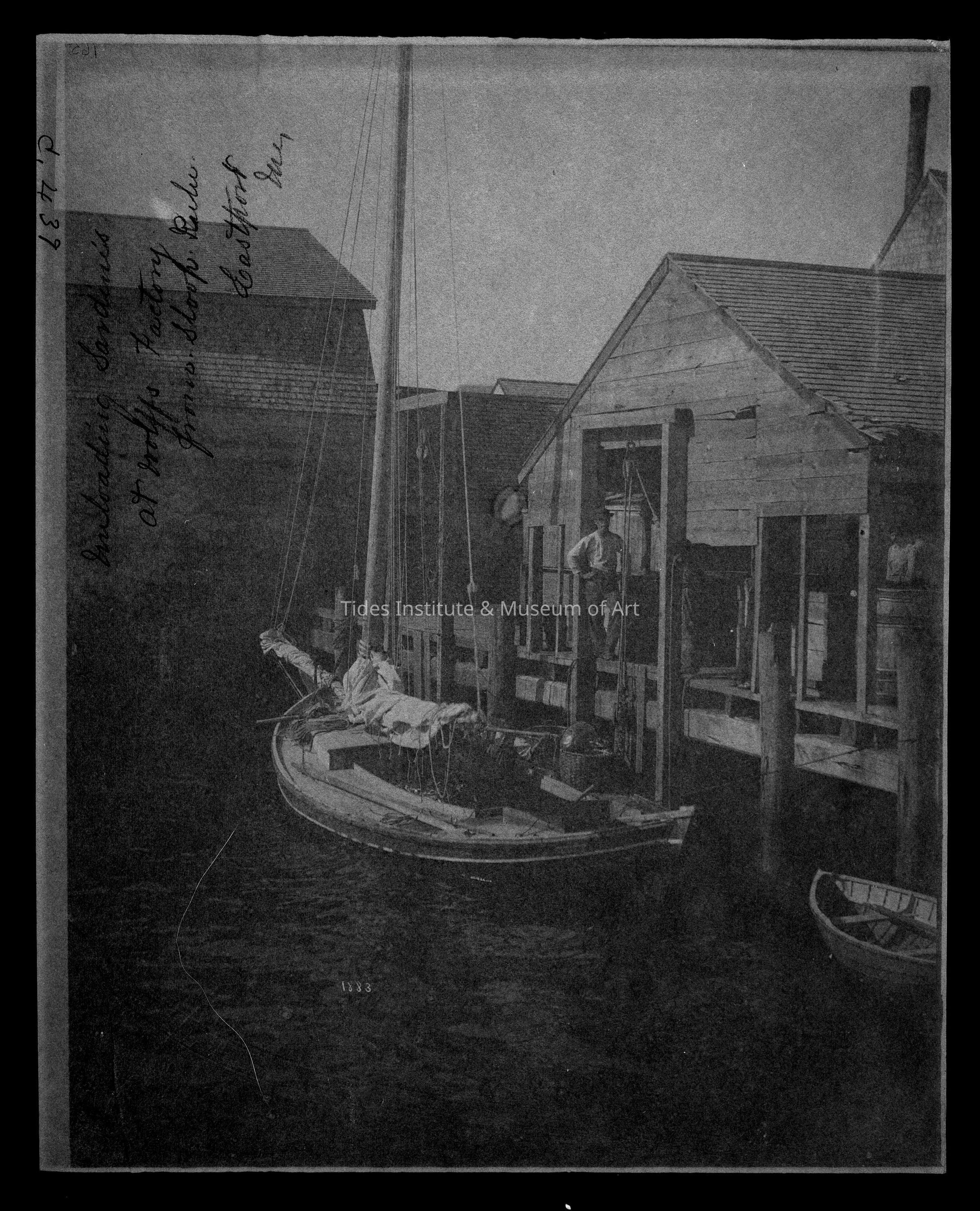 Unloading Sardines at Wolff's Factory from Sloop Boat, Eastport, Maine
