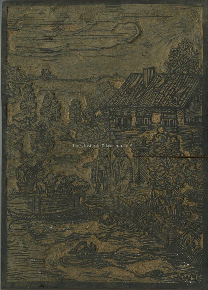Untitled Block [House with people and water] | Pauline Inman (?)Description