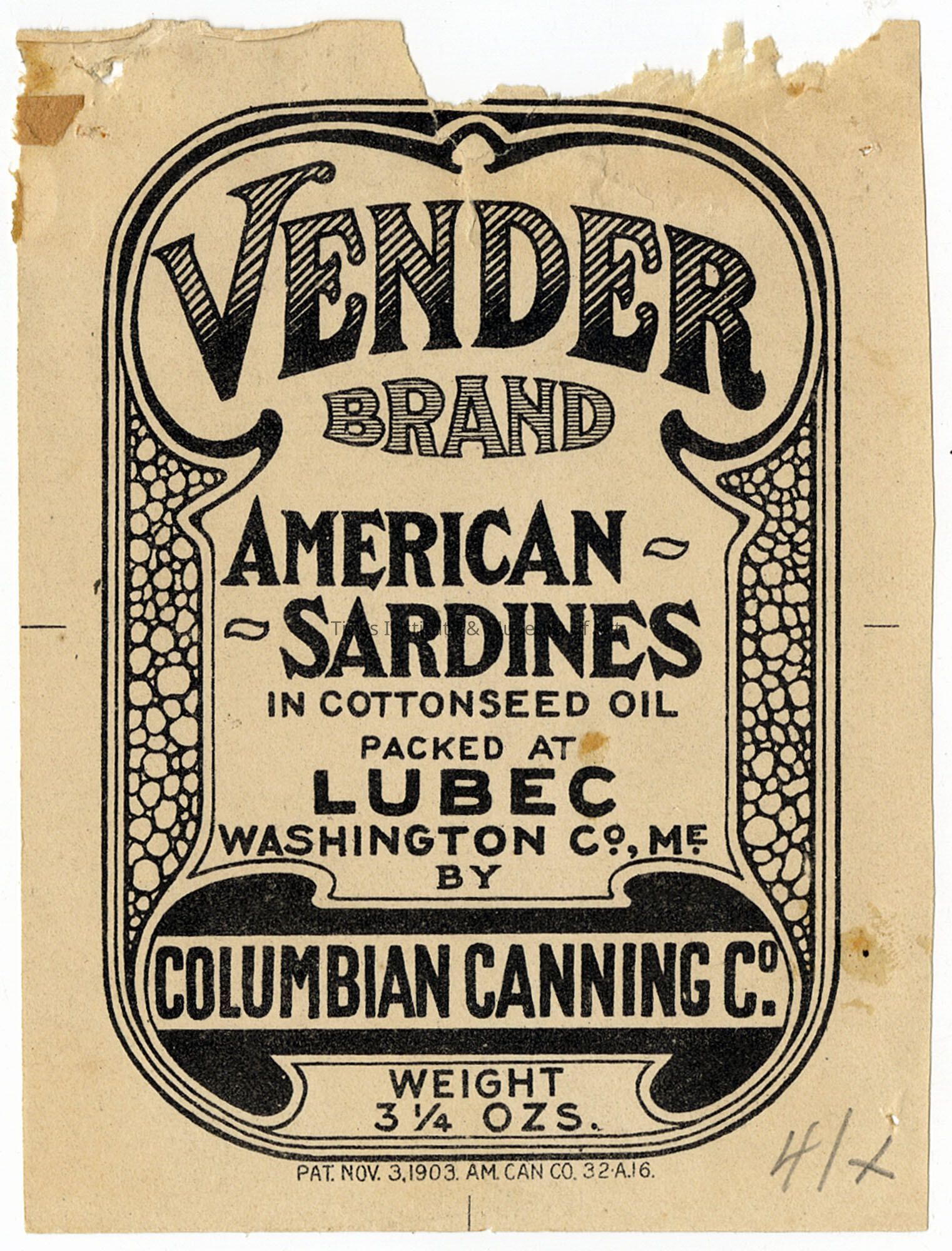 Old Accession Number: 882 Circa: 1903 Description: Packed at Lubec Washington County, ME. By Columbian Canning Co.