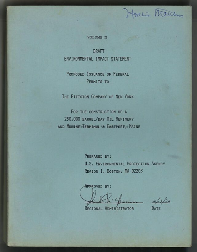 For the Construction of a 250,000 Barrel/Day Oil Refinery and Marine Terminal - Eastport, Maine.
