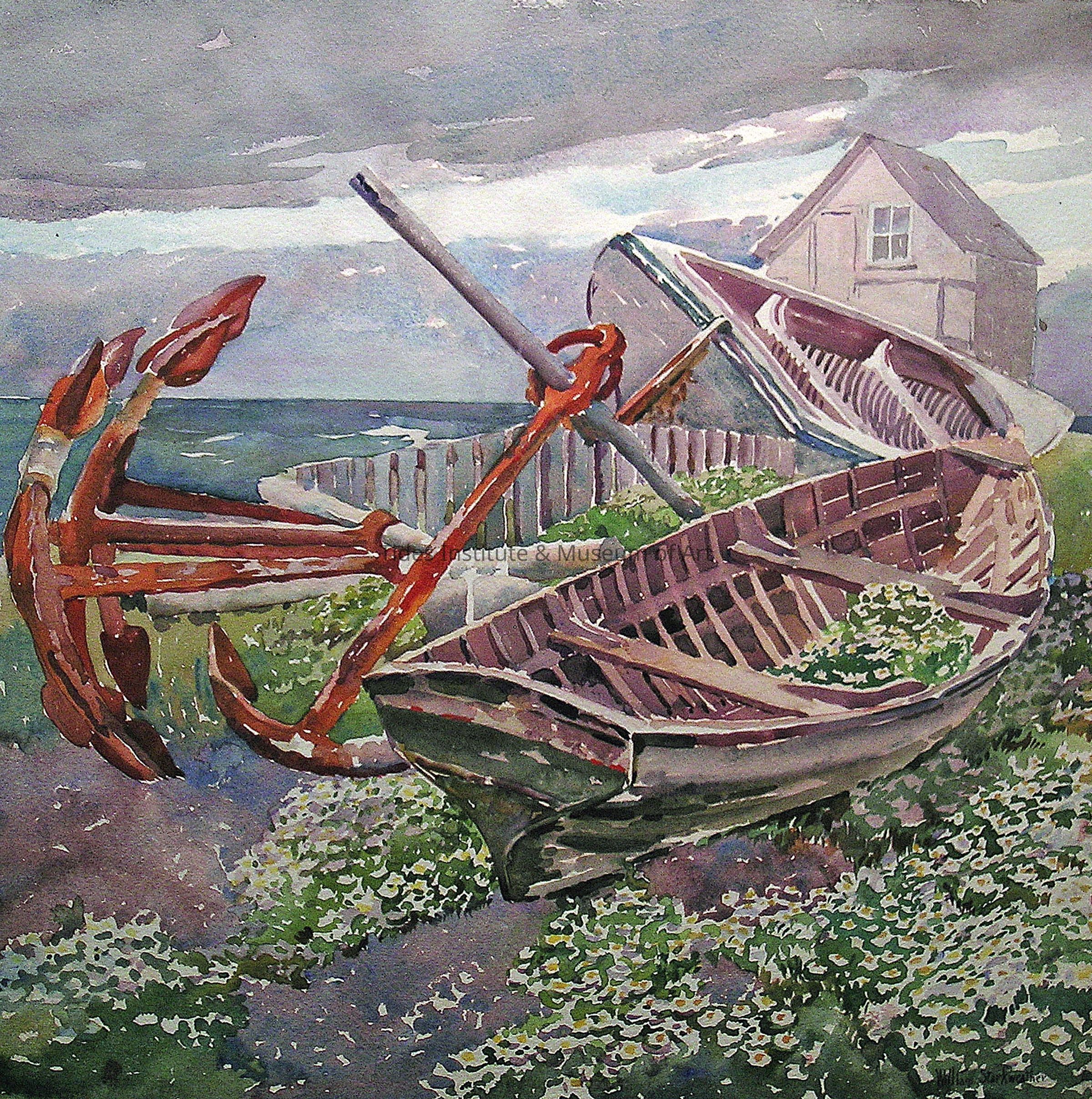 William Starkweather (1879-1969) | On a Magdalen Island Beach, Havre-Aubert, Magdalen Islands, 1937, watercolor, 19 1/2”x19 1/2”