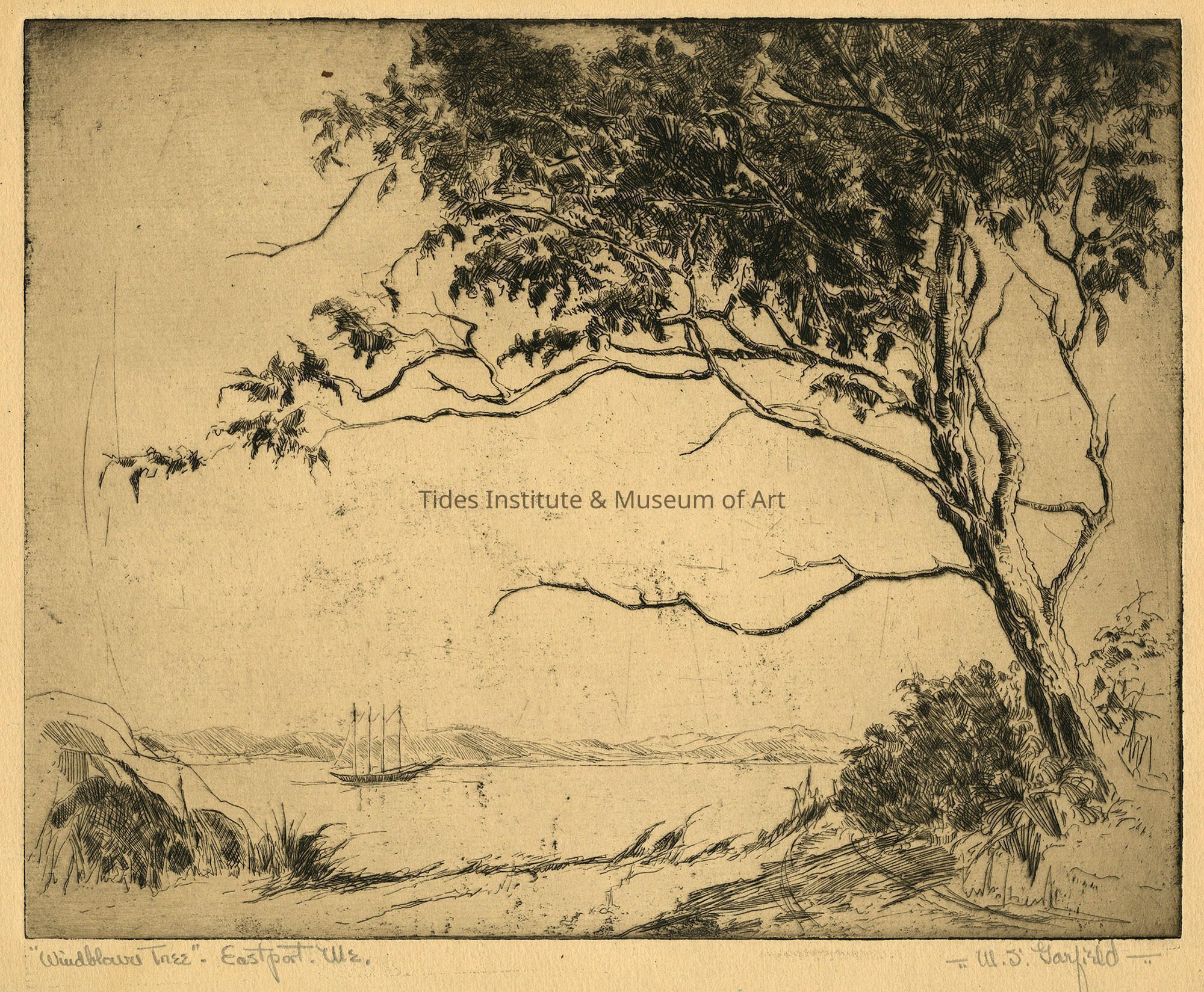 “Windblown Tree”. Eastport. Me | M.S. Garfield [Marjorie Stuart Garfield]