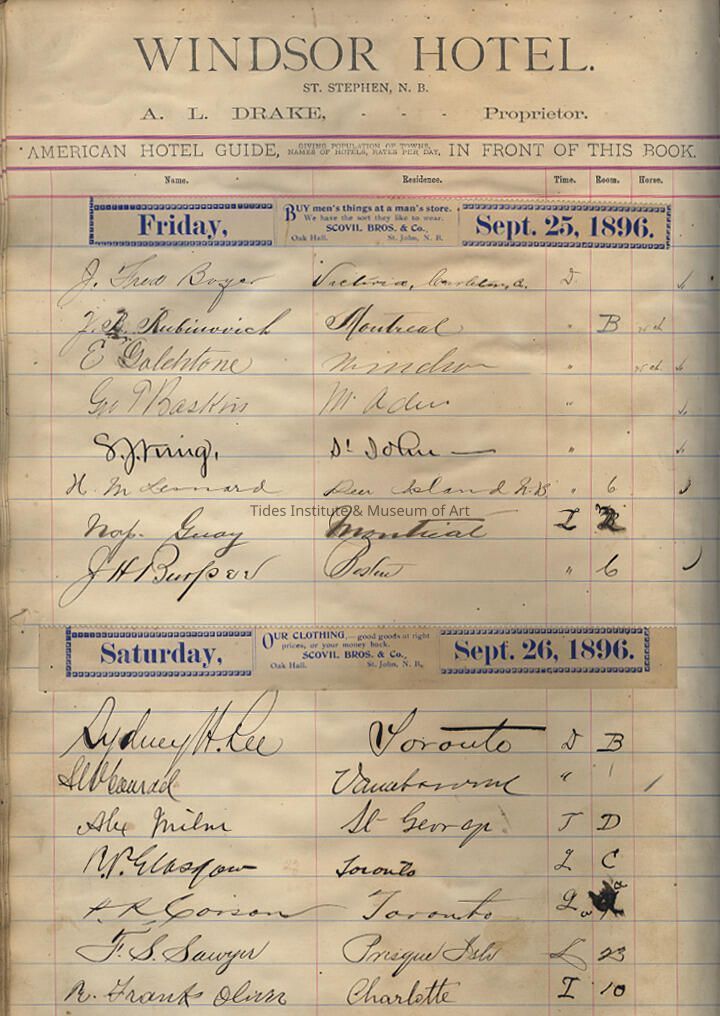 Windsor Hotel, St. Stephen, New Brunswick | Hotel Ledger | 1896 - 1897 | A.L. Drake, Proprietor