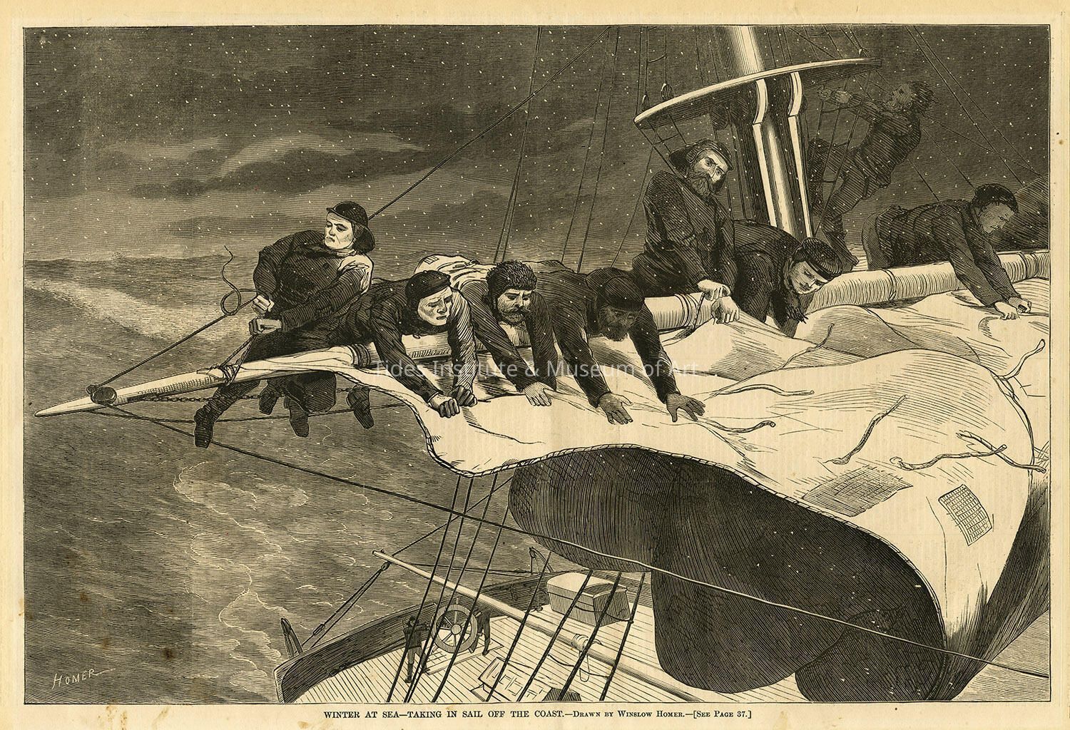 Winter at Sea — Taking in sail off the coast — Drawn by Winslow Homer | Winslow HomerDescription