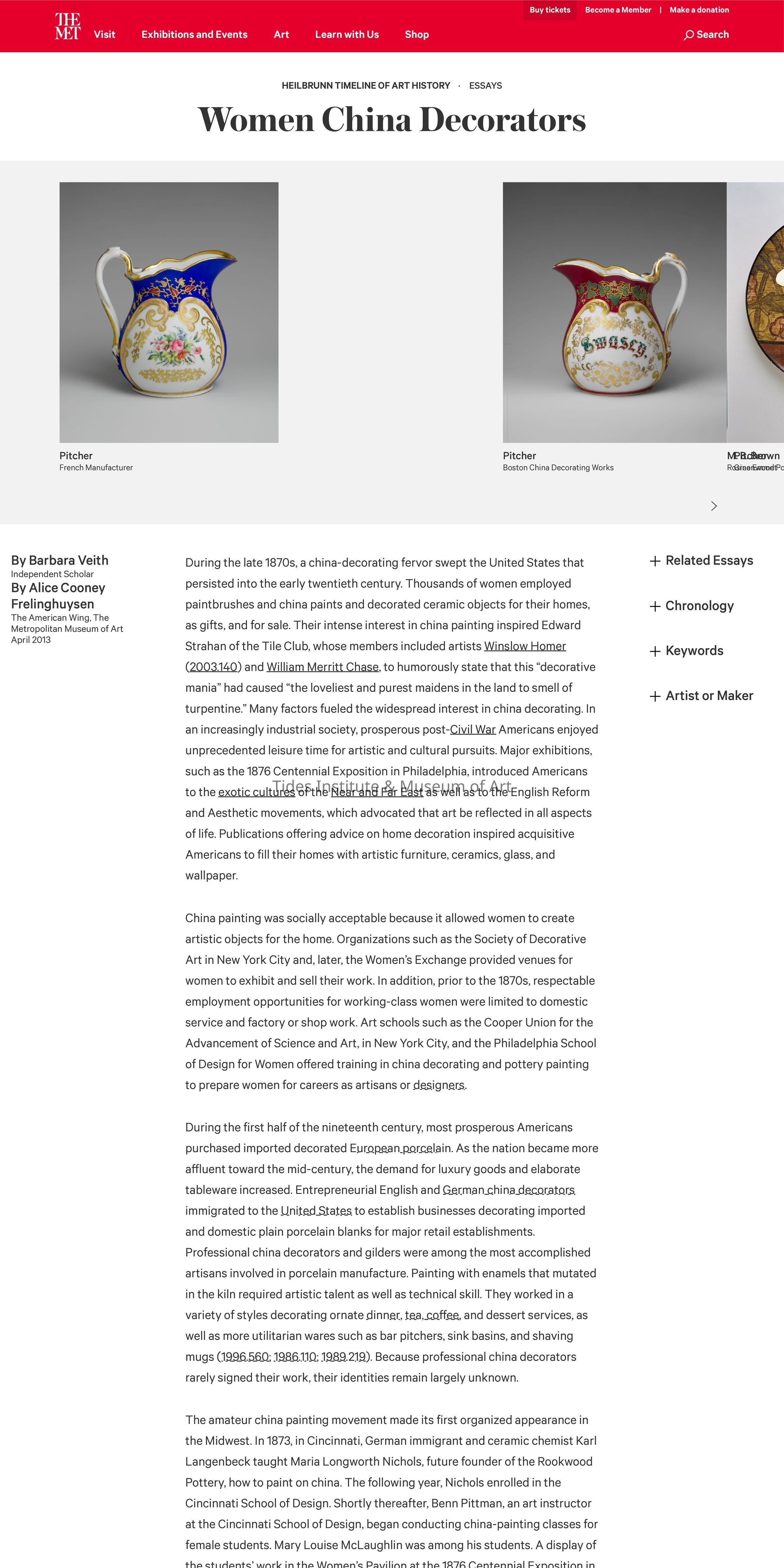 Women China Decorators | Barbara Veith and Alice Cooney Frelinghuysen | In Heilbrunn Timeline of Art History. New York: The Metropolitan Museum of Art, 2000–.Description
