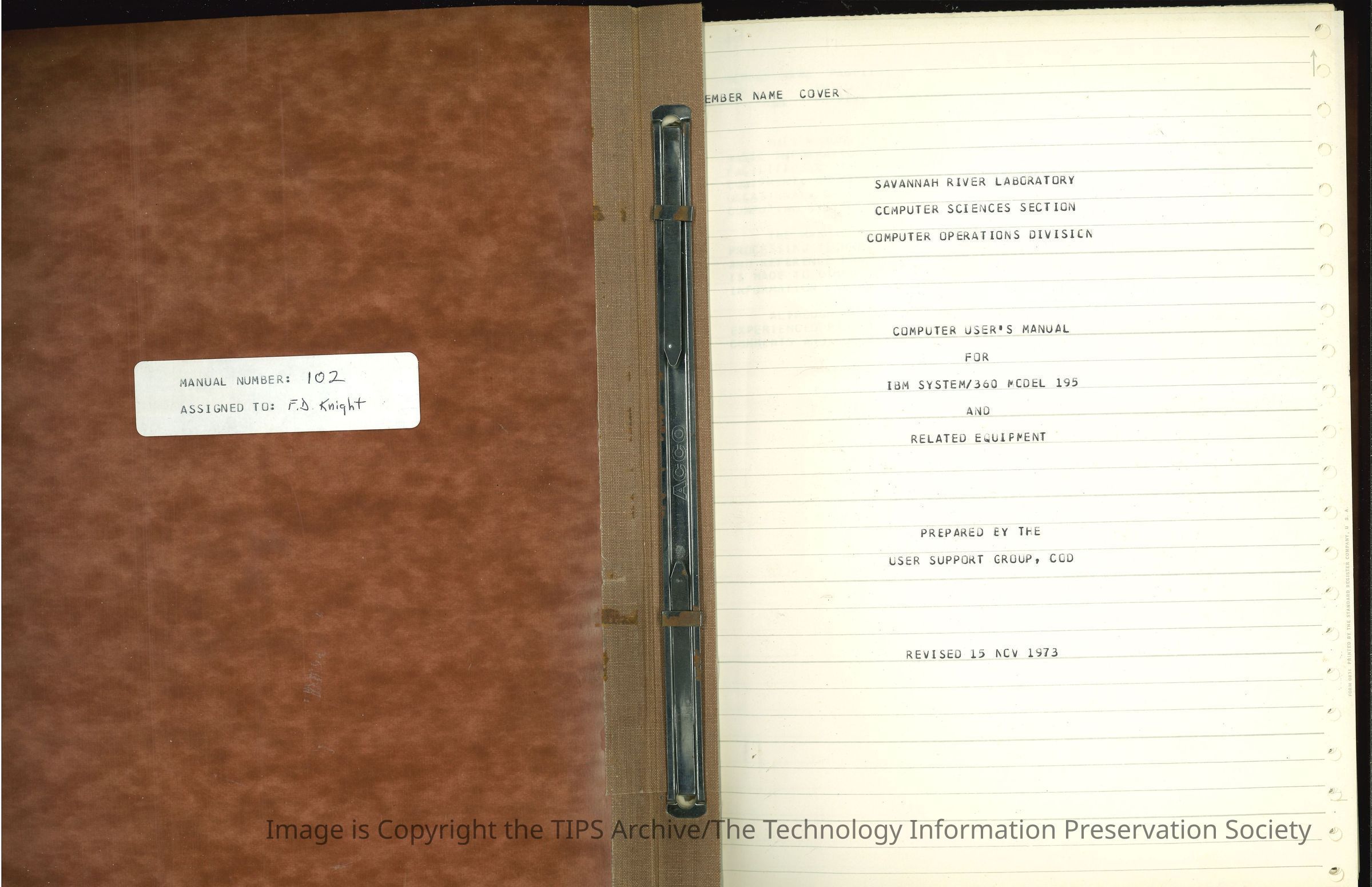 Computer User's Manual for IBM System/360 Model 195 and Related Equipment