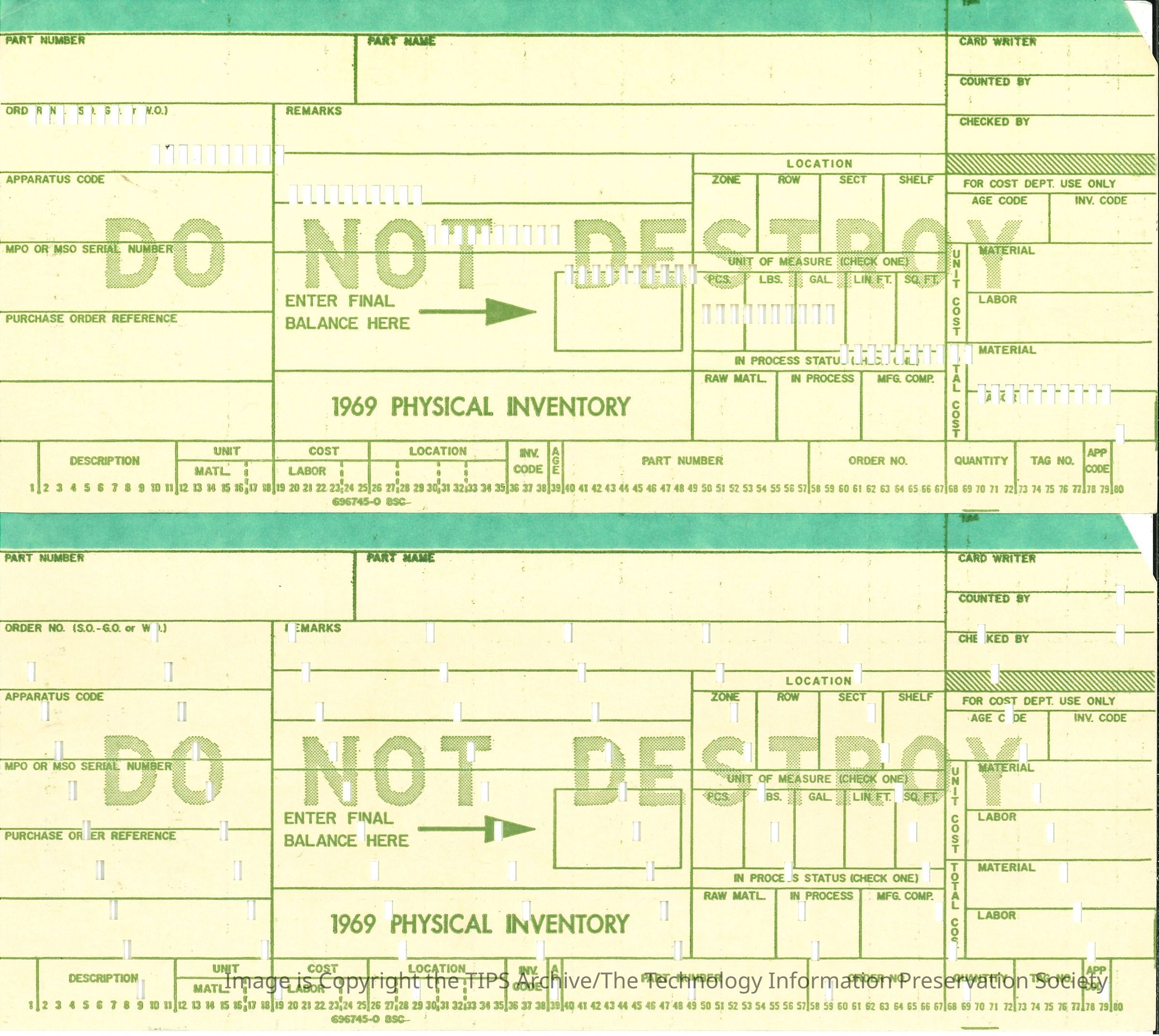 1969 Physical Inventory
