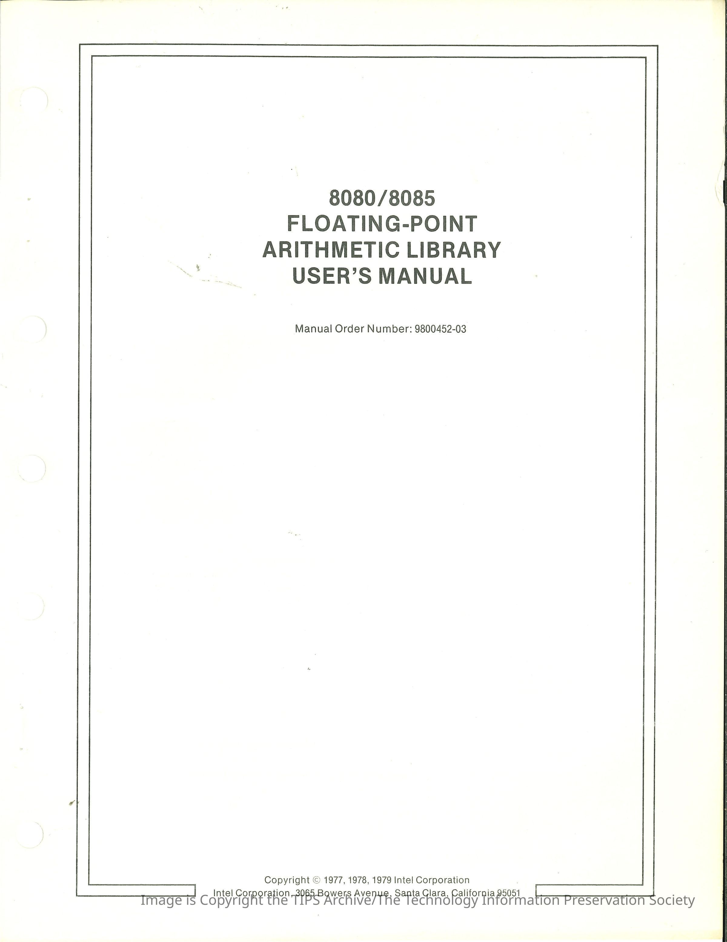 8080/8085 Floating-Point Arithmetic Library : User's Manual