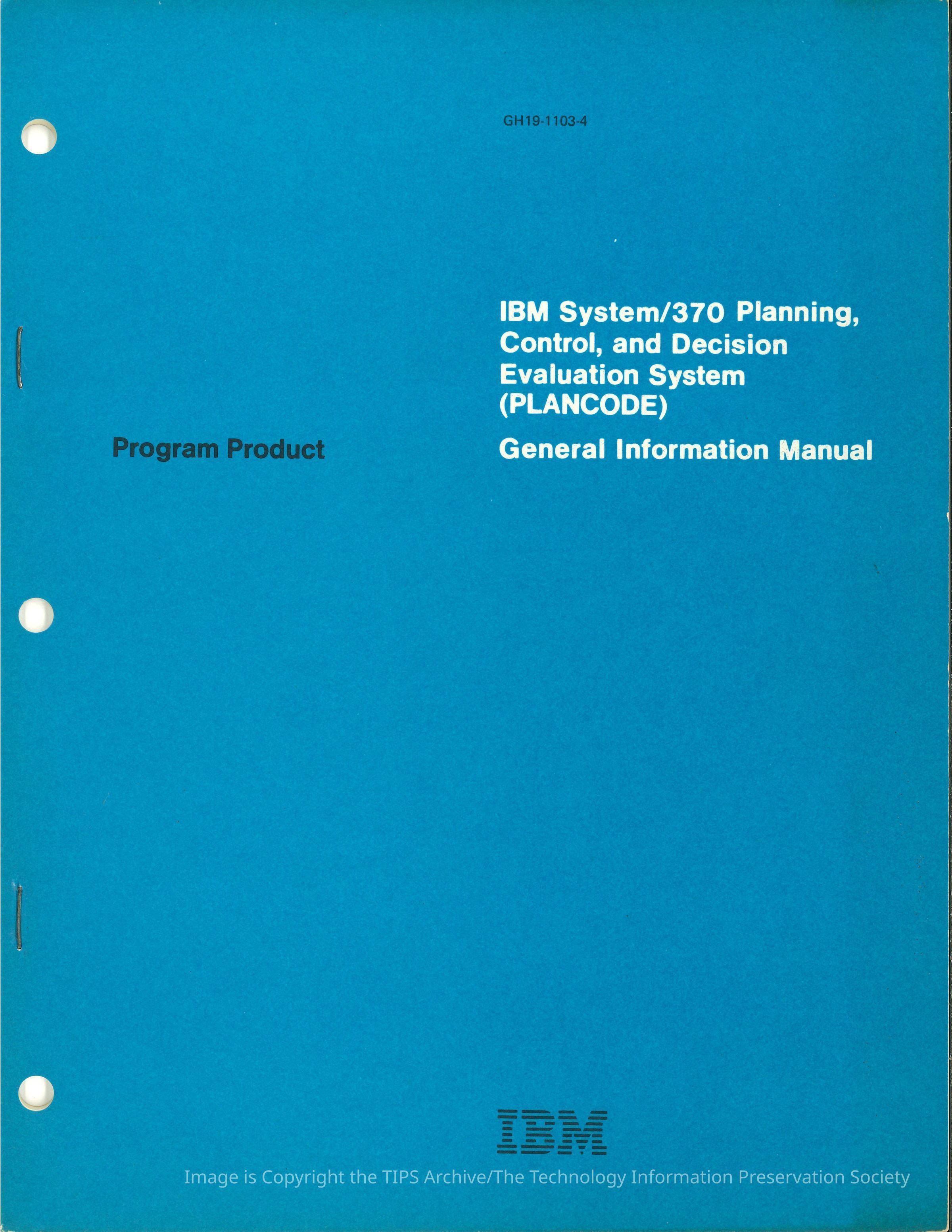 IBM System/370 Planning, Control, and Decision Evaluation System (PLANCODE)Entry/Object ID