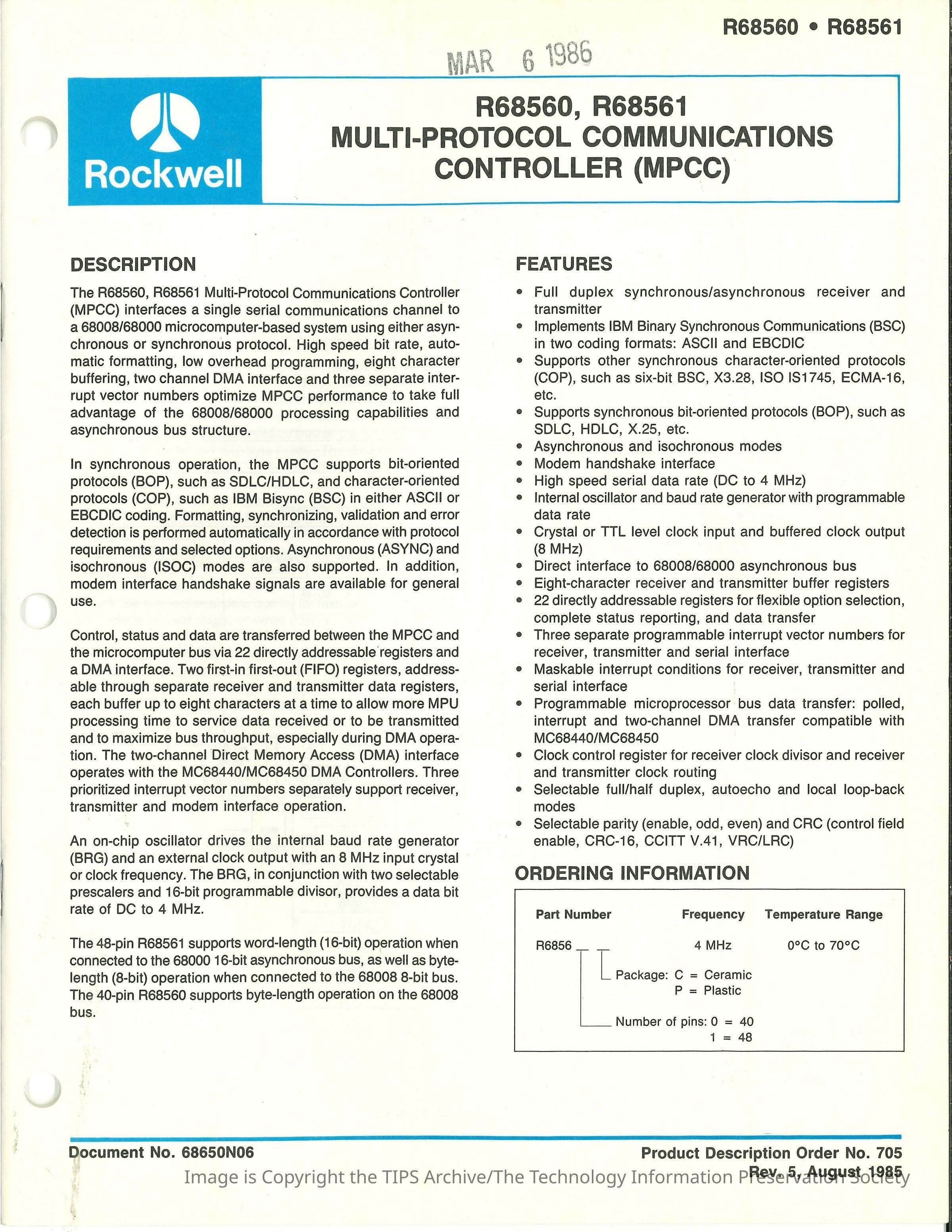 R68560, R68561 Multi-Protocol Communications Controller (MPCC)Entry/Object ID