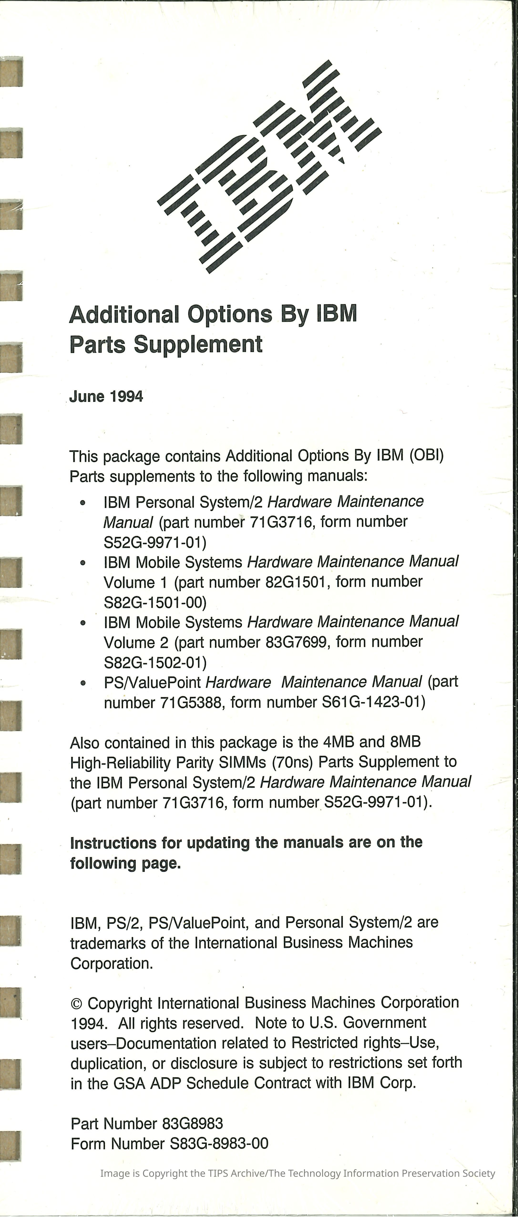 Additional Options By IBM Parts Supplement
