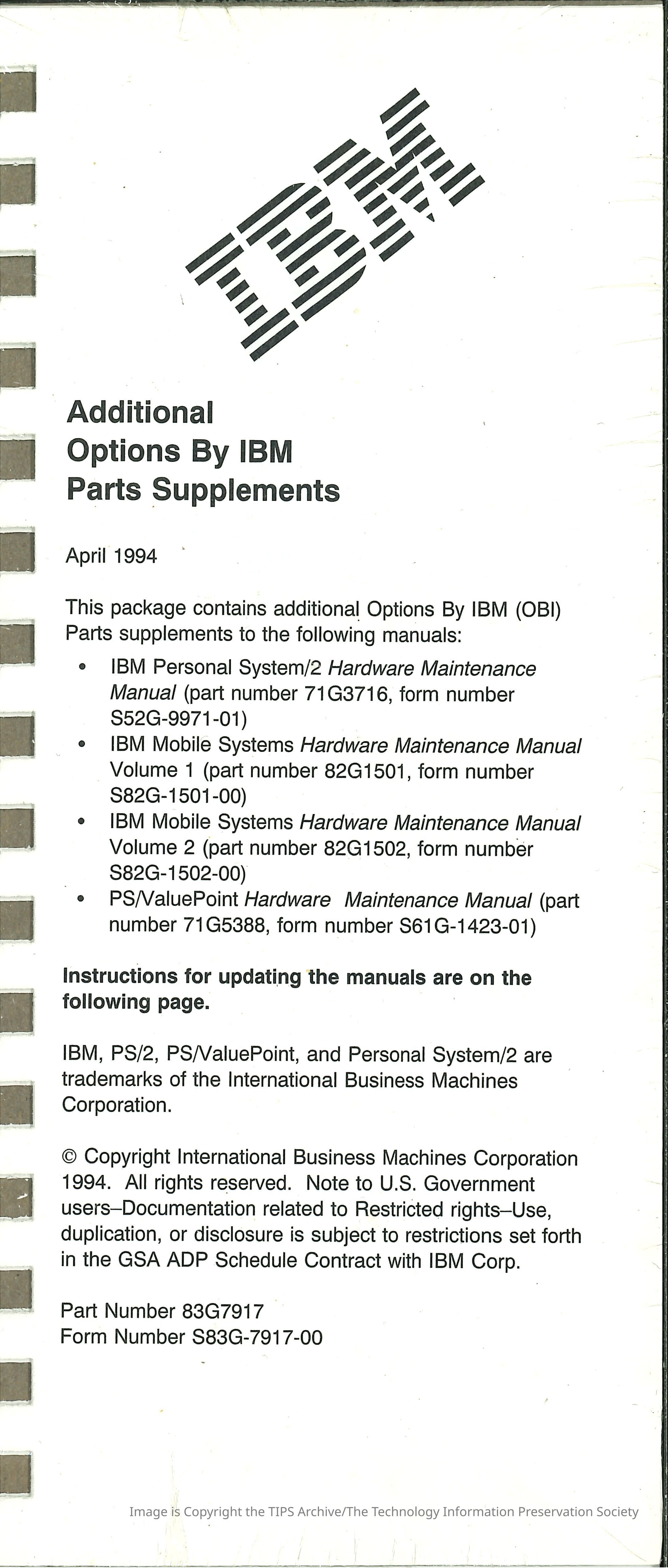 Additional Options By IBM Parts Supplements