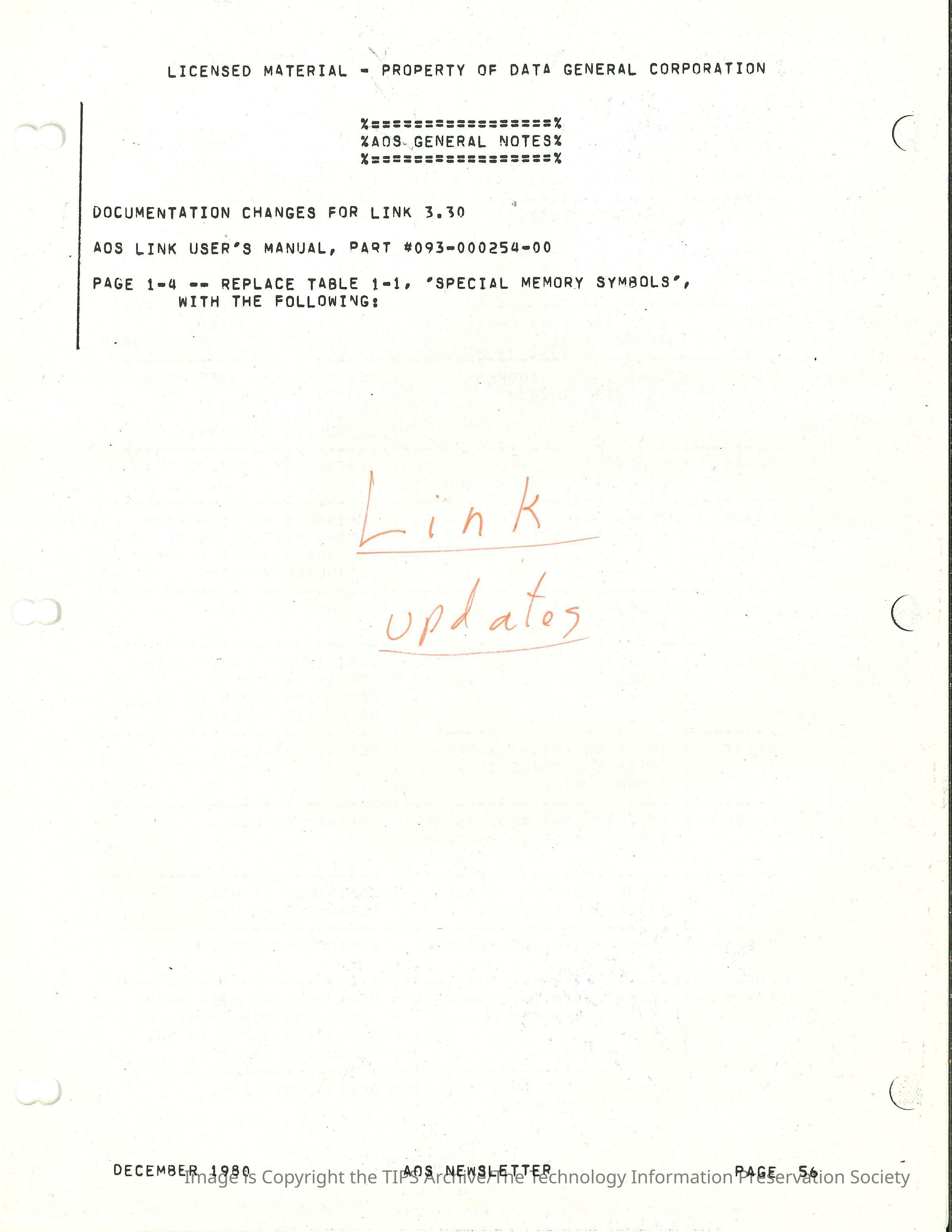 Arrived with DGC 093-000254-00 (2024.0057.0022) and is an update there to. This piece is an excerpt of the December 1980 AOS Newsletter, pages 56 through 73.