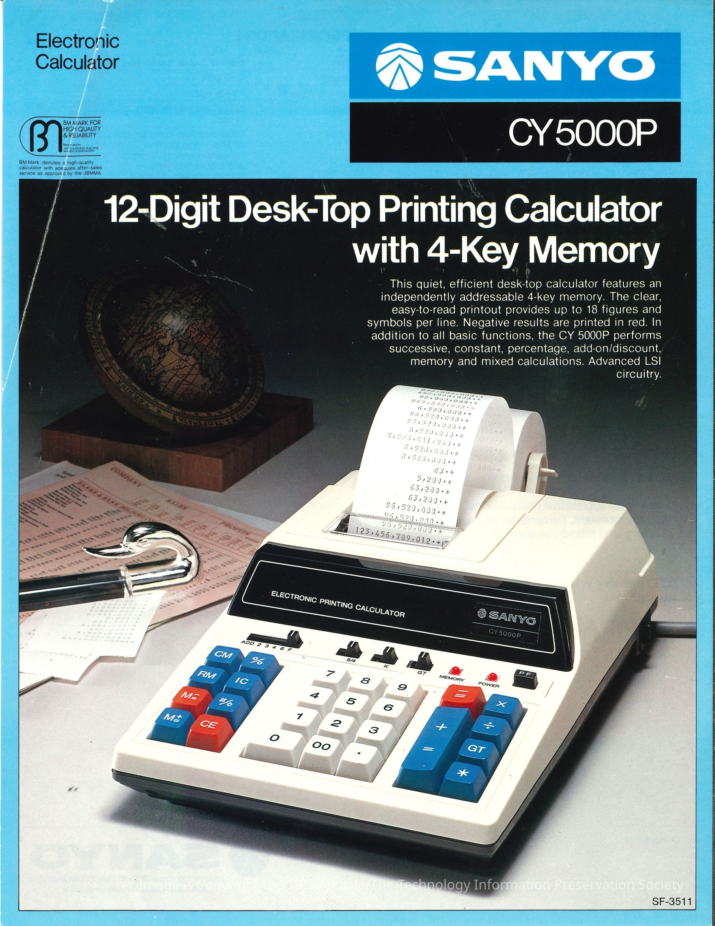CY5000P 12-Digit Desk-Top Printing Calculator with 4-Key Memory