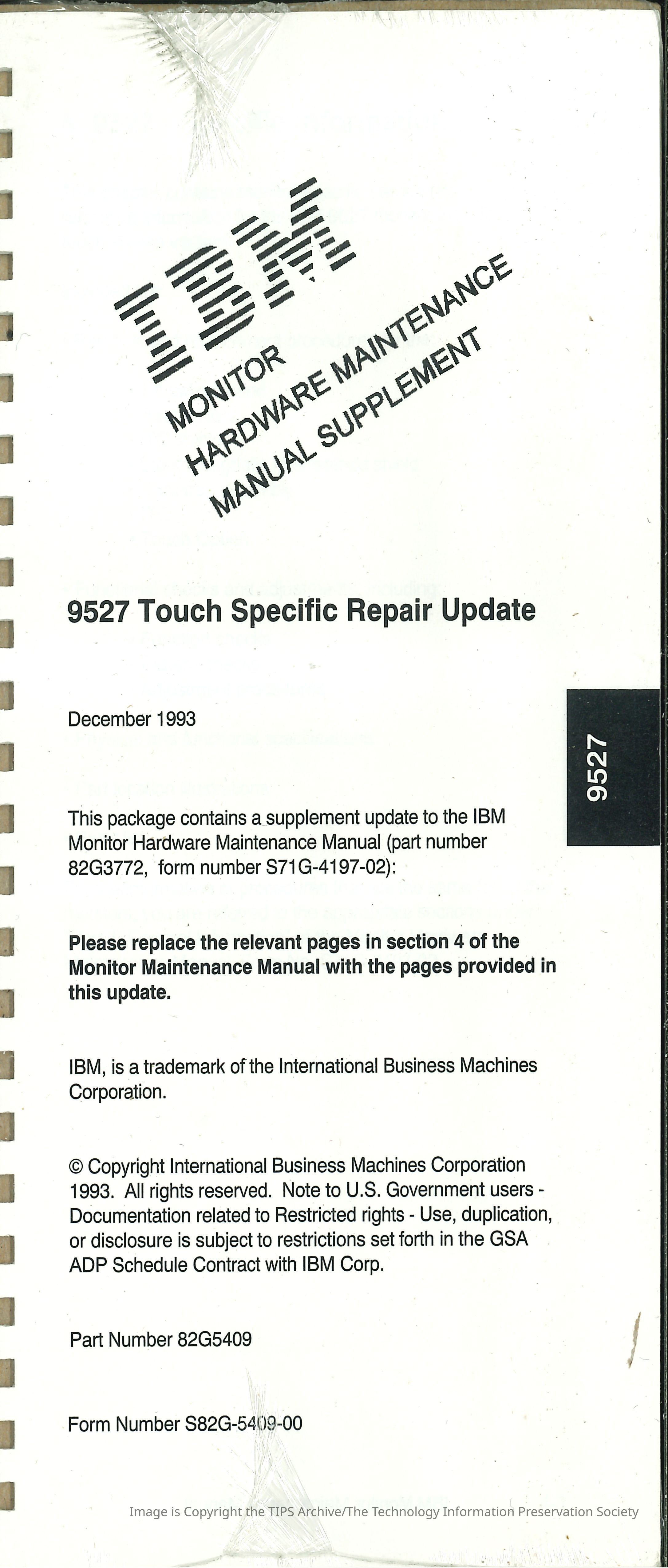 Monitor Hardware Maintenance Manual Supplememnt : 9527 Touch Specific Repair Update