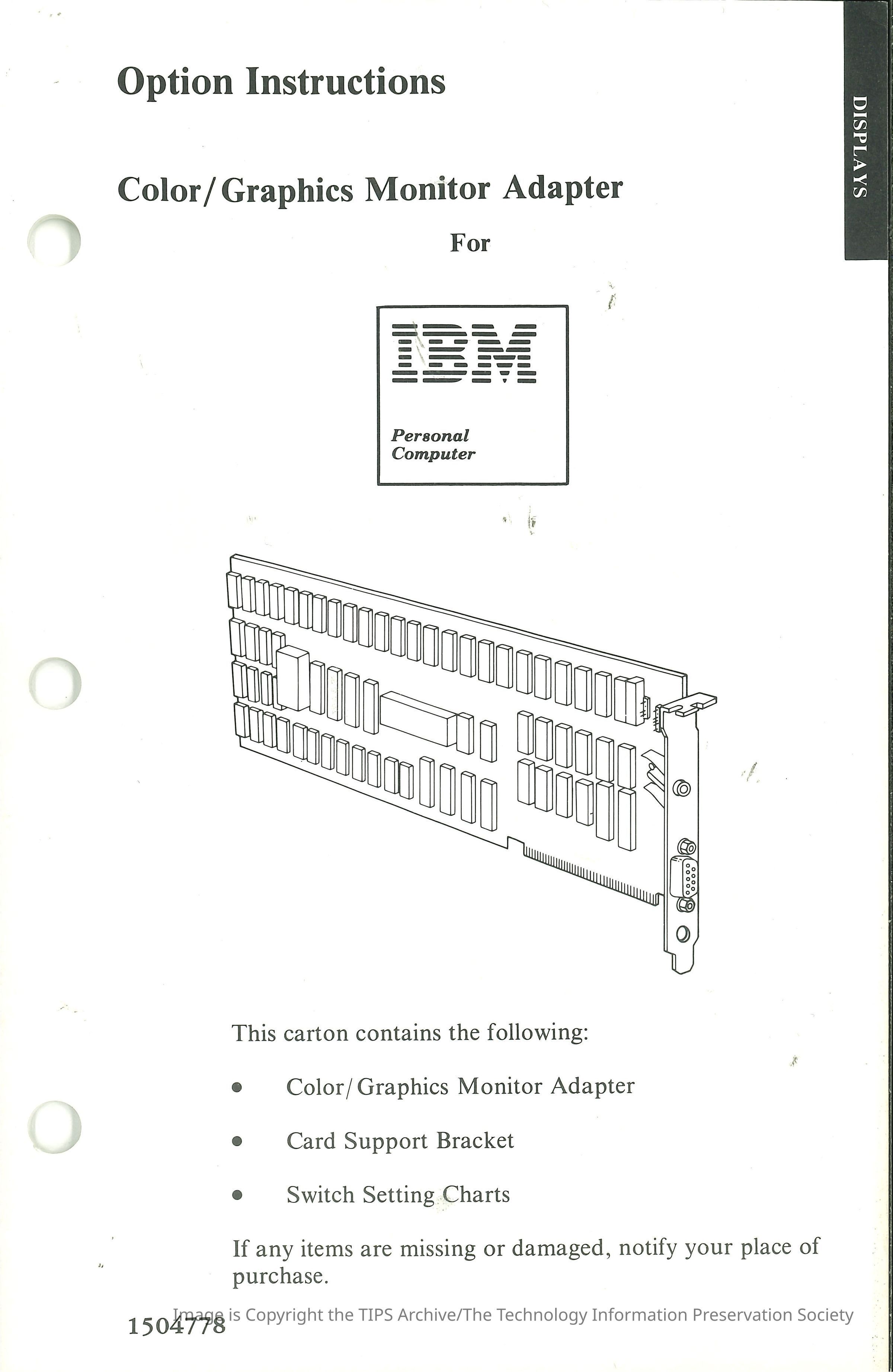 Option Instructions : Color/Graphics Monitor Adapter