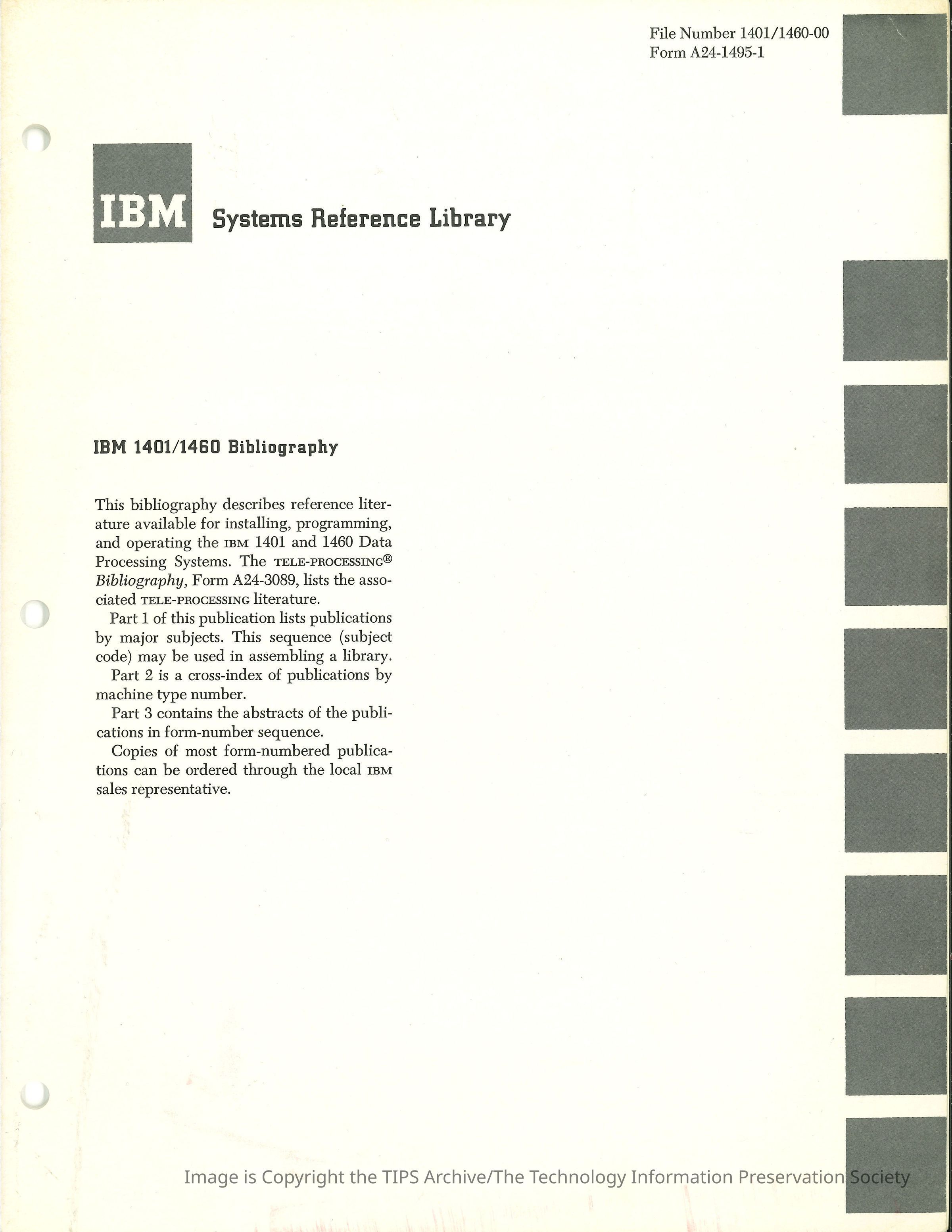 IBM 1401/1460 BibliographyEntry/Object ID