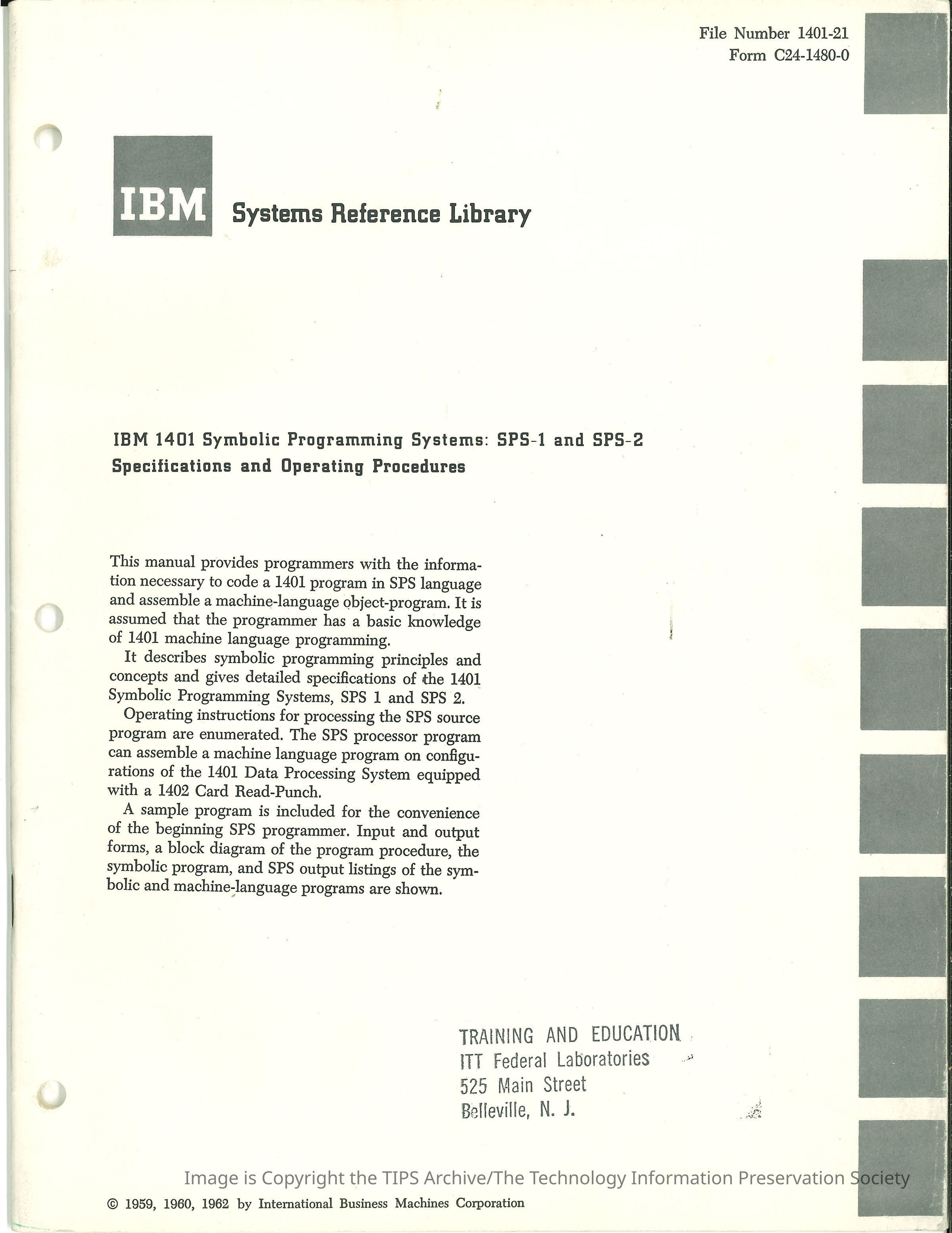 IBM 1401 Symbolic Programming Systems: SPS-1 and SPS-2Secondary Title