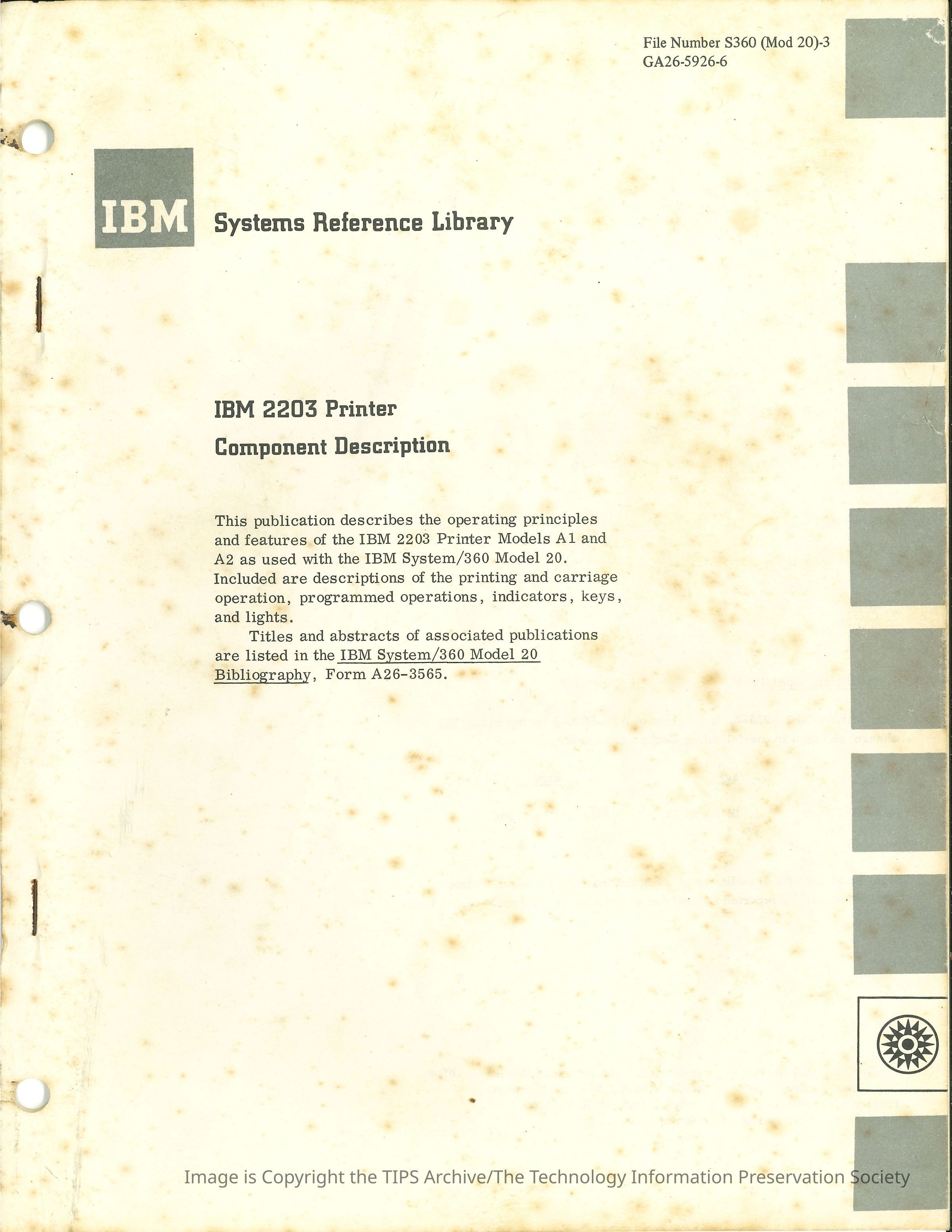 IBM 2203 Printer : Component DescriptionEntry/Object ID