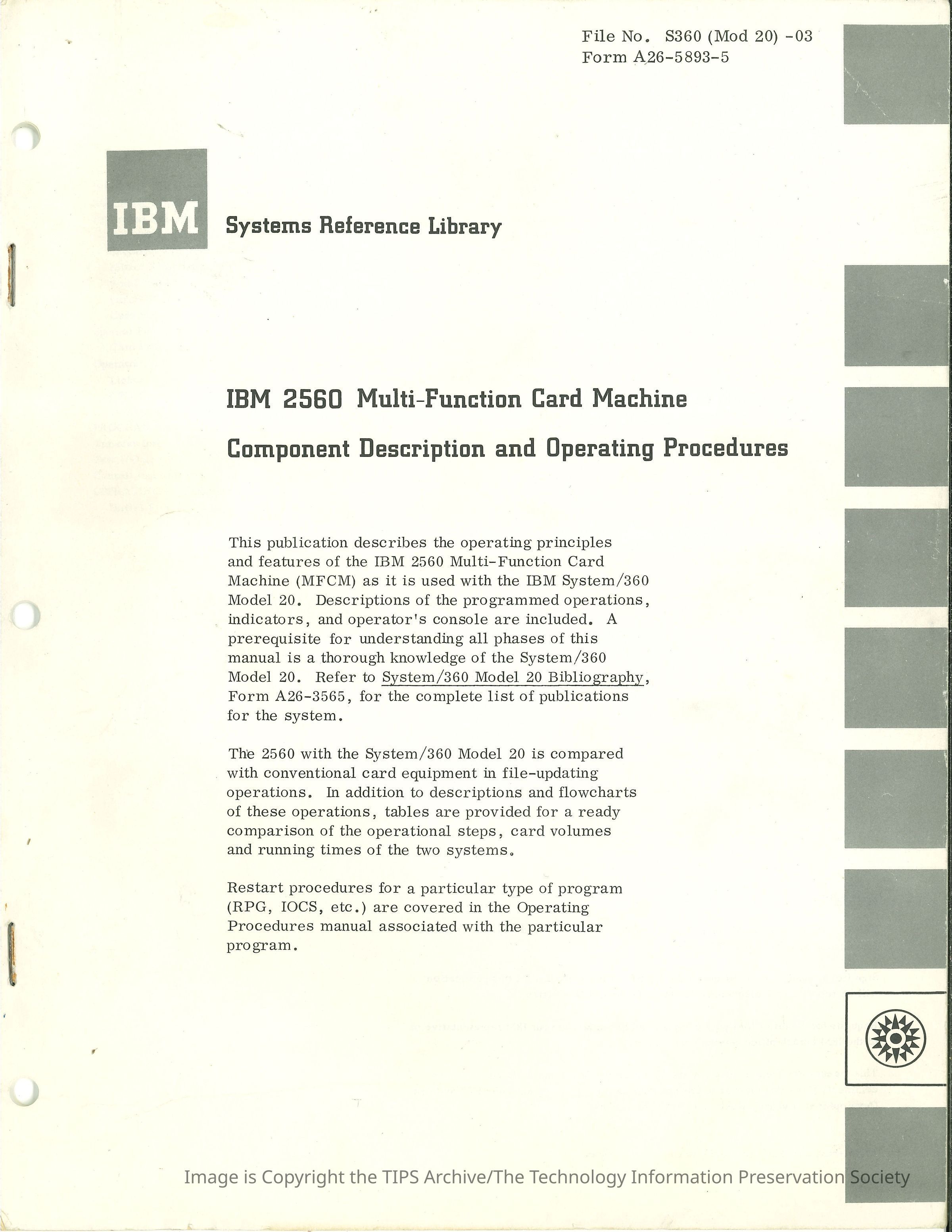 IBM 2560 Multi-Function Card Machine : Component Description and Operating Procedures