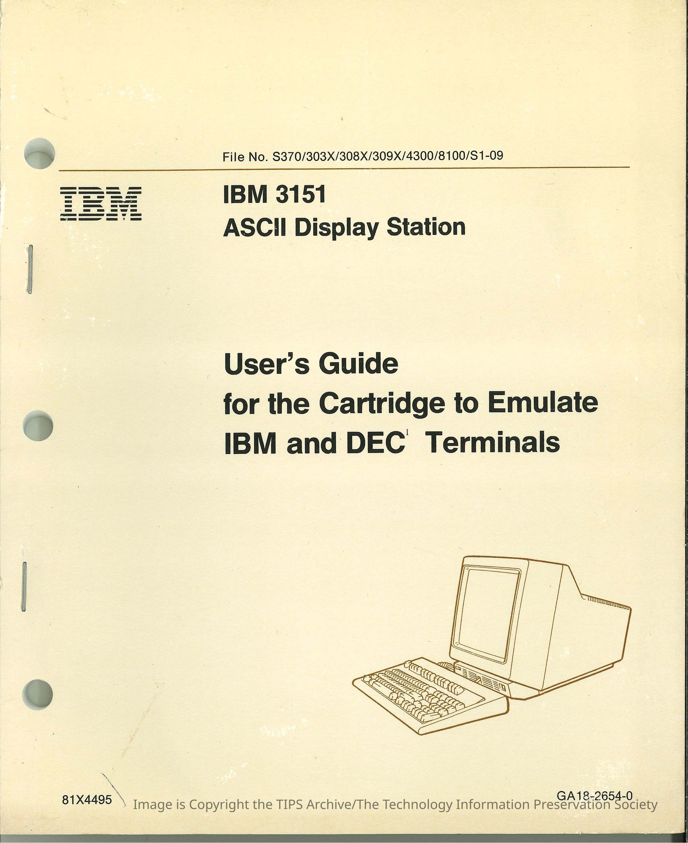 IBM 3151 ASCII Display Station : User's Guide for the Cartridge to Emulate IBM and DEC TerminalsEntry/Object ID
