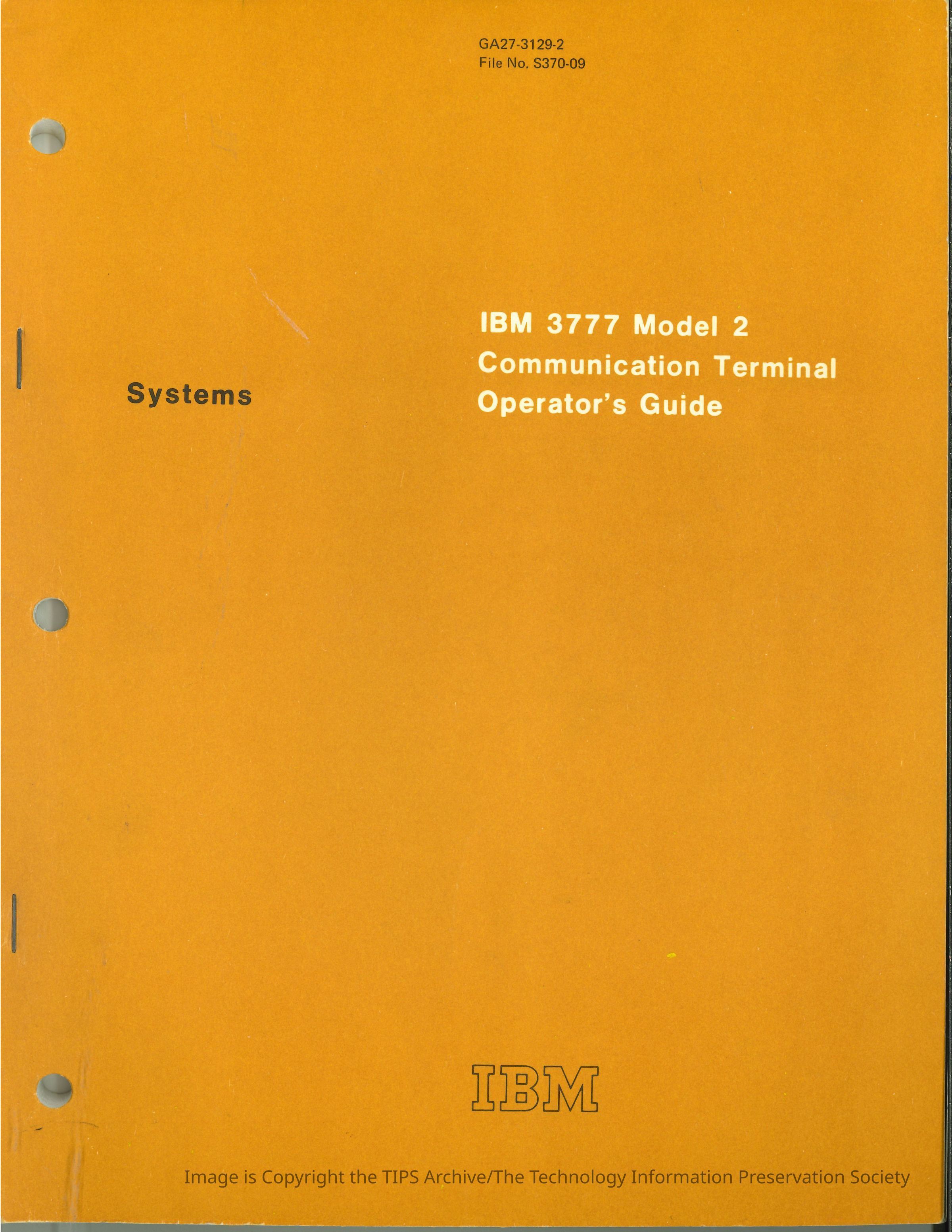 IBM 3777 Model 2 Communication TerminalEntry/Object ID
