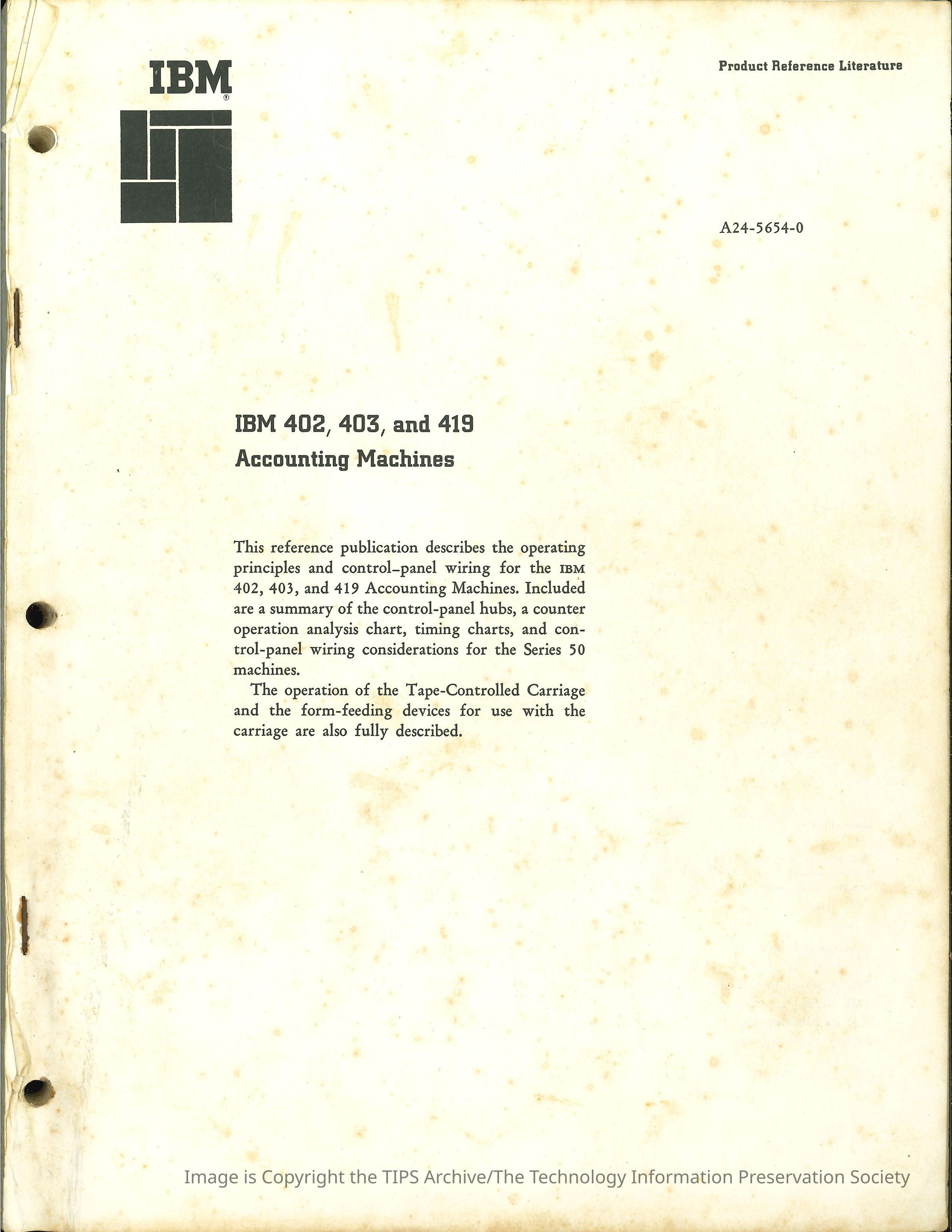 IBM 402, 403, and 419 Accounting MachinesEntry/Object ID