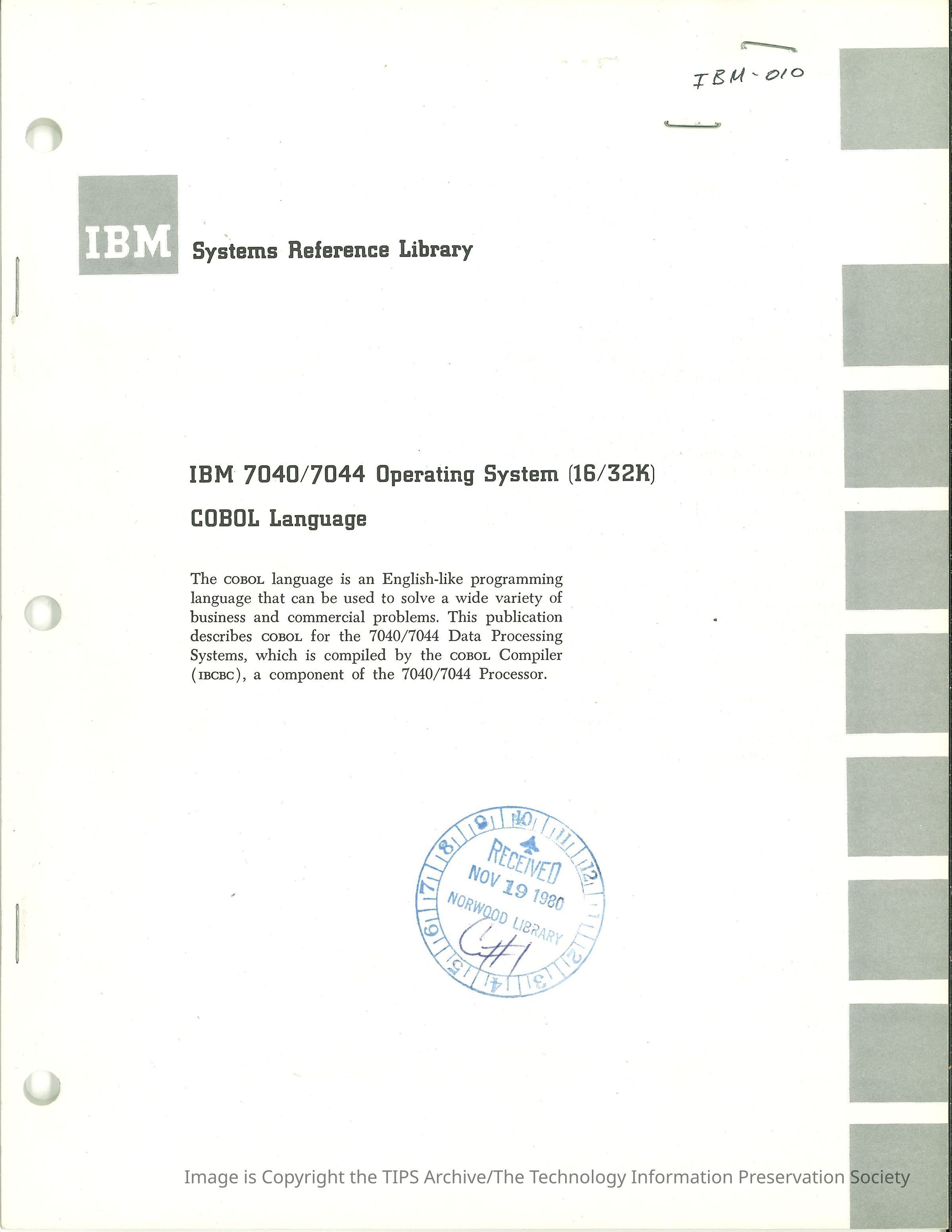 IBM 7040/7044 Operating System (16/32K)Secondary Title