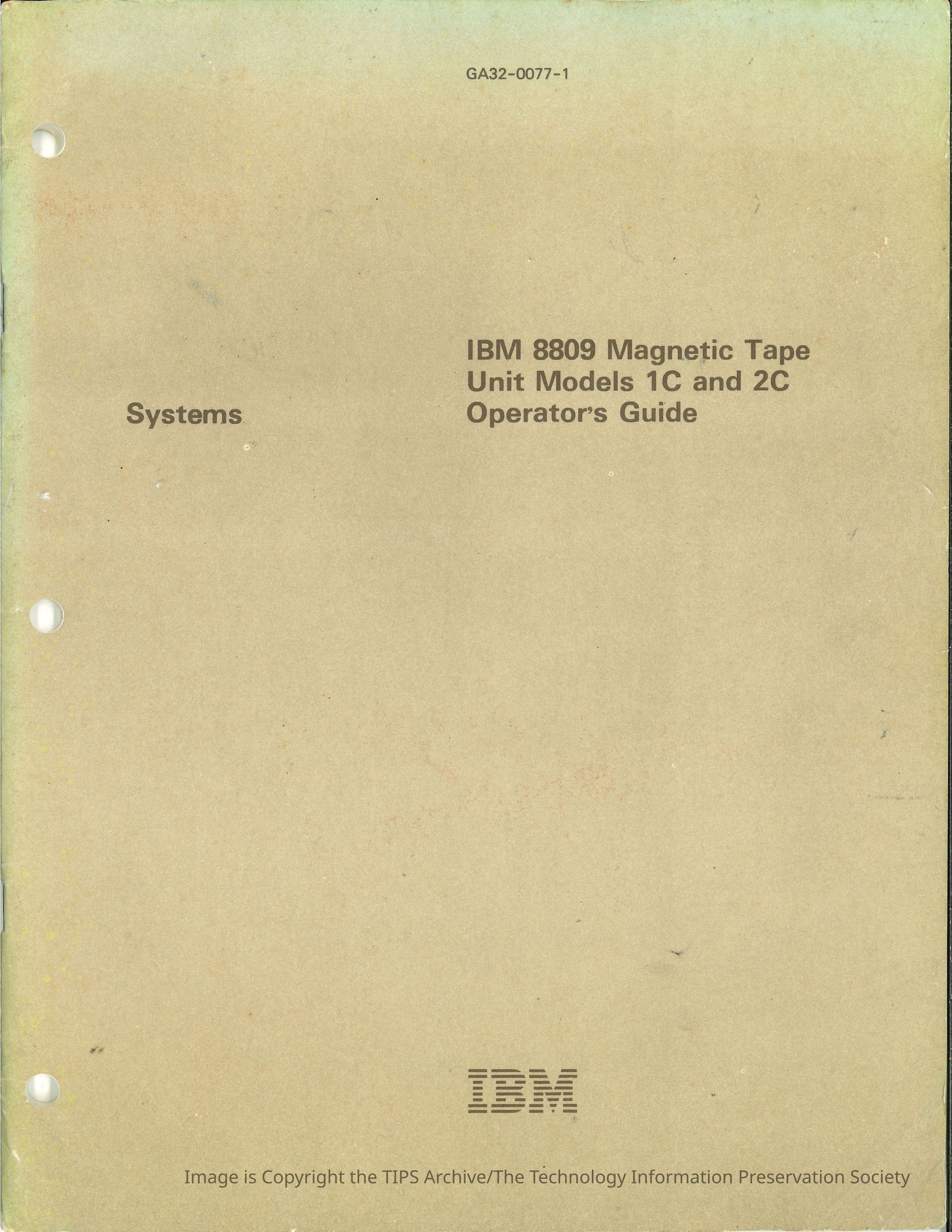 IBM 8809 Magnetic Tape Unit Models 1C and 2C : Operator's Guide