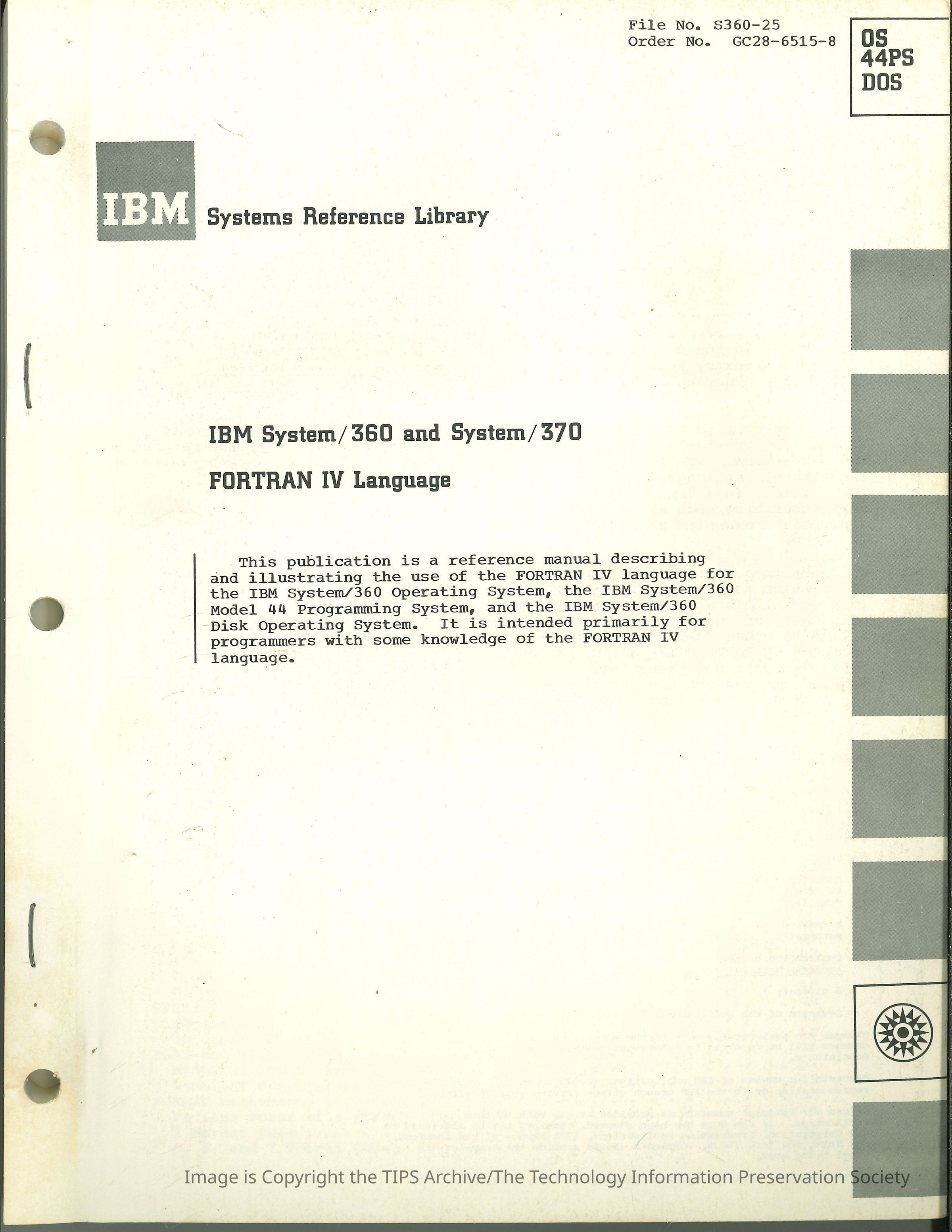 IBM System/360 and System/370 : FORTRAN IV Language