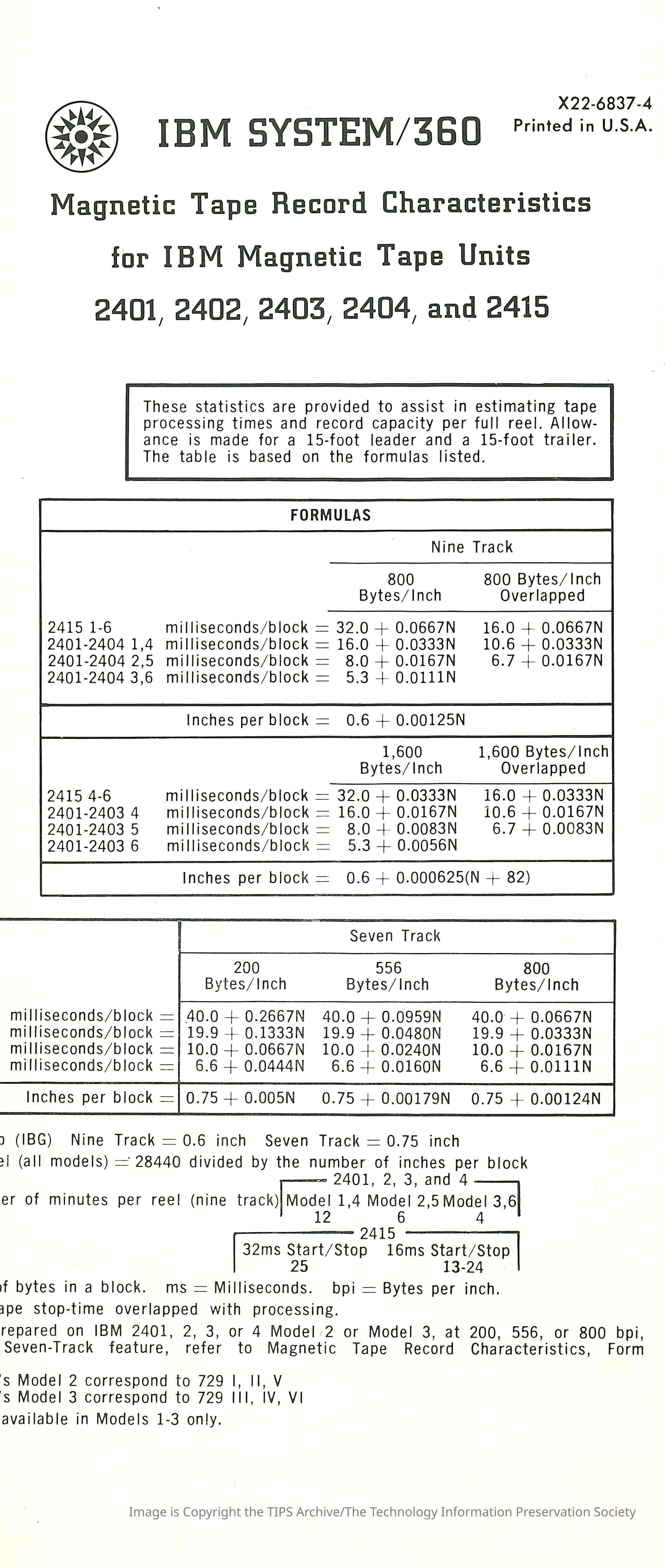IBM System/360 Magnetic Tape Record CharacteristicsEntry/Object ID