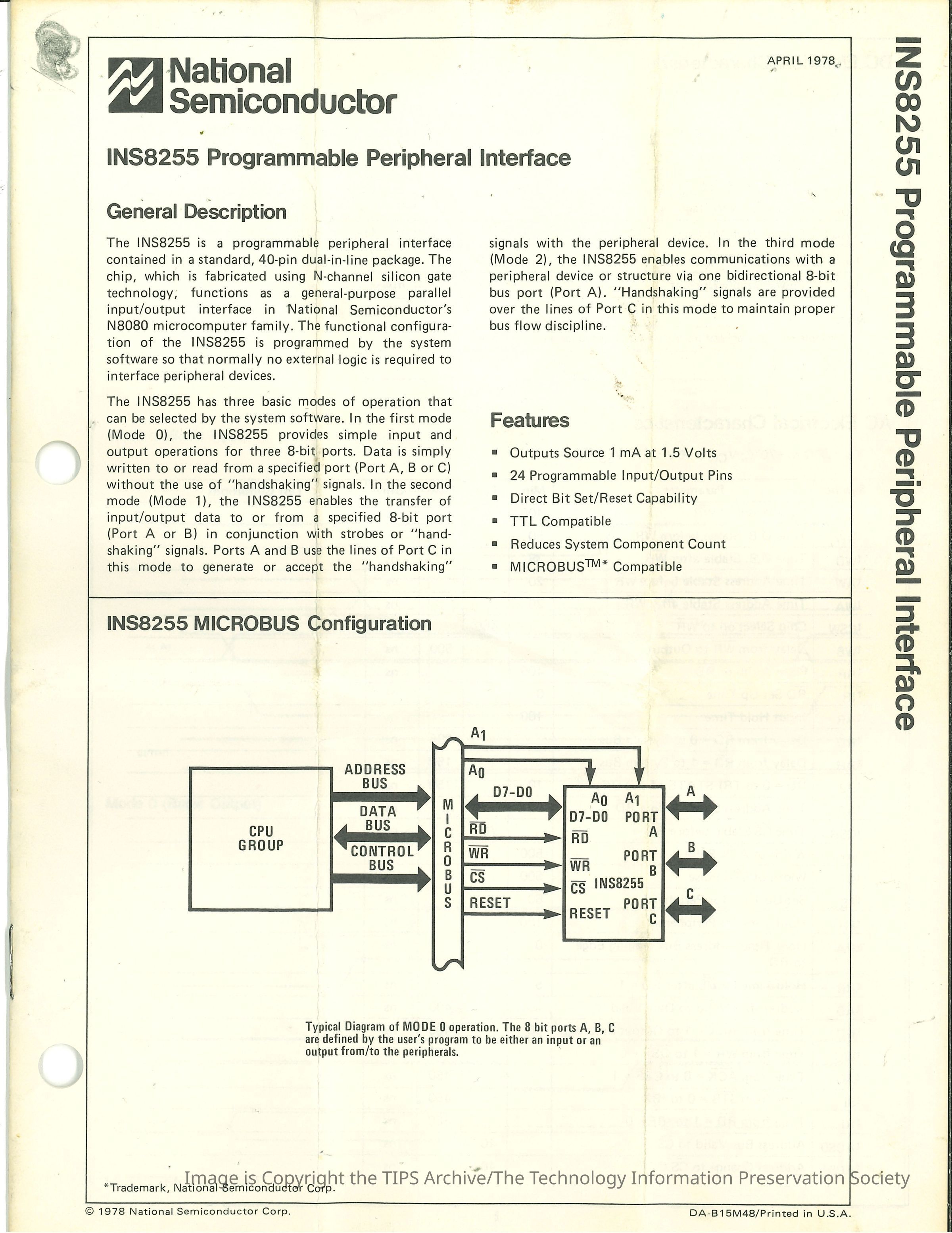 INS8255 Programmable Peripheral Interface