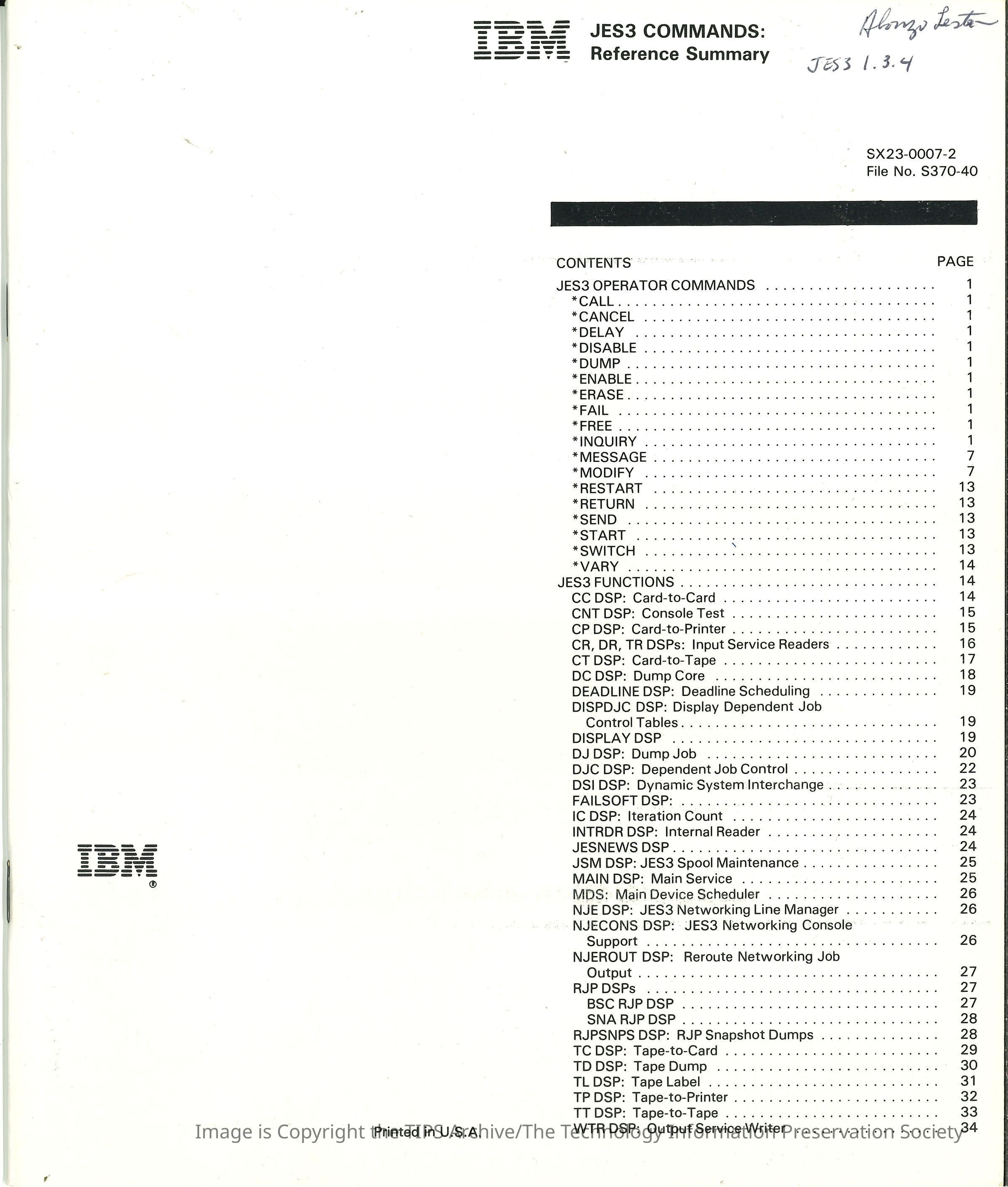 JES3 Commands : Reference Summary